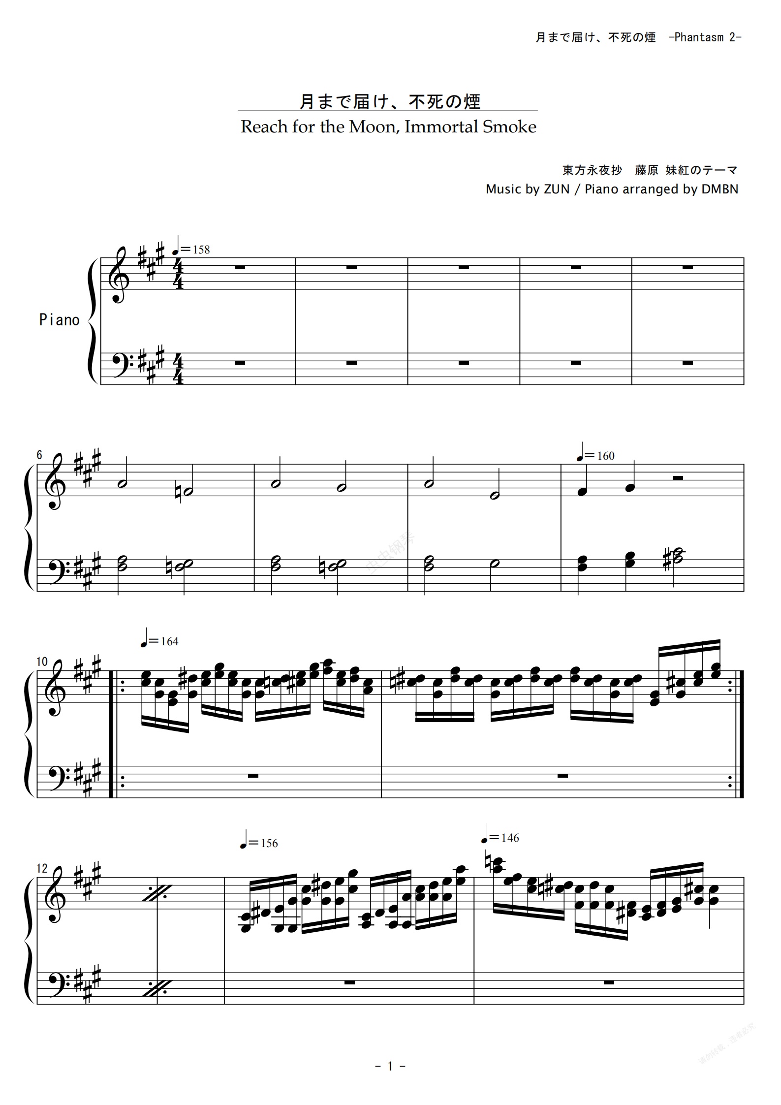 钢琴谱:【东方永夜抄】飘上月球,不死之烟(分谱2)