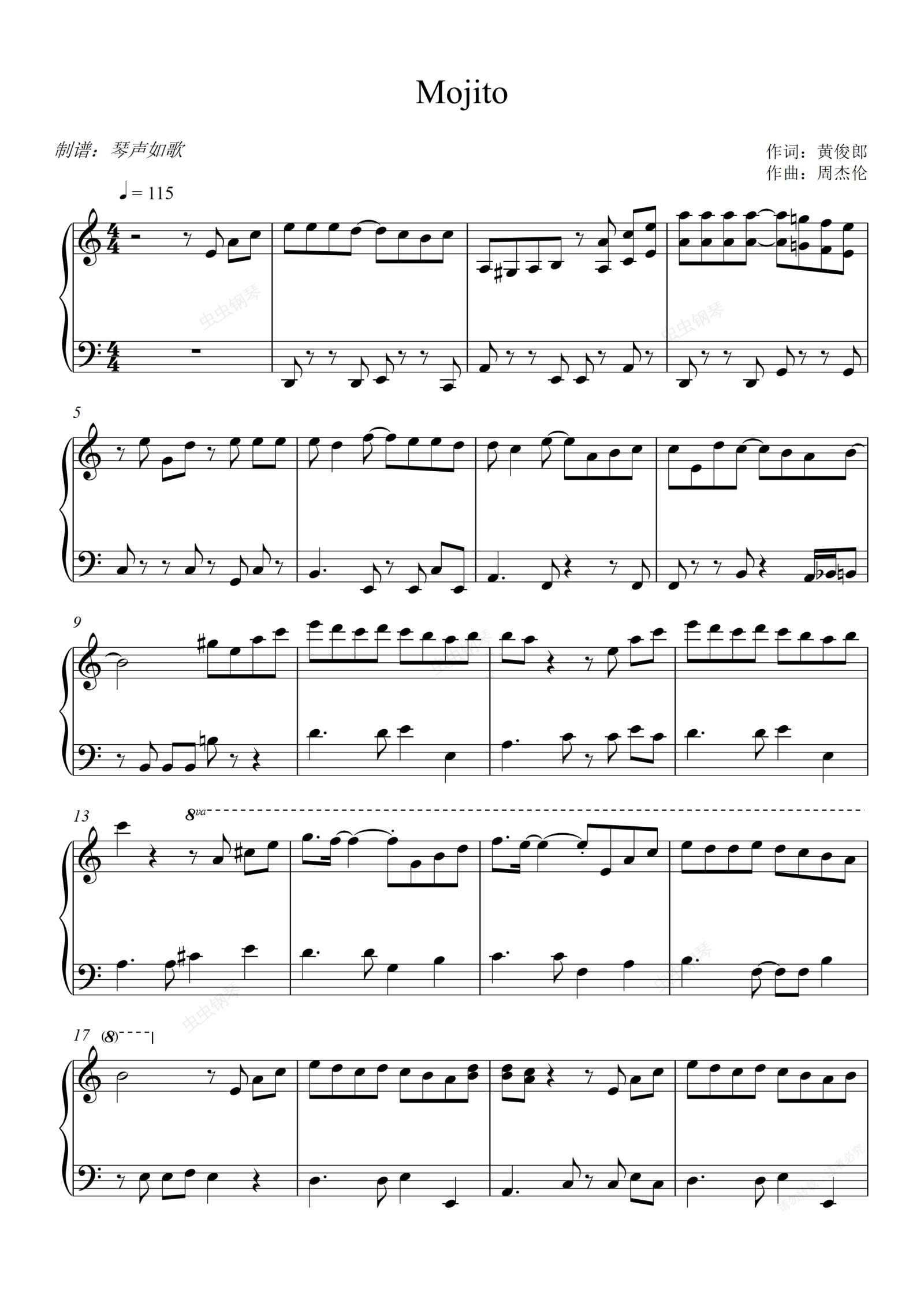 钢琴谱:Mojito-周杰伦 超高还原钢琴独奏