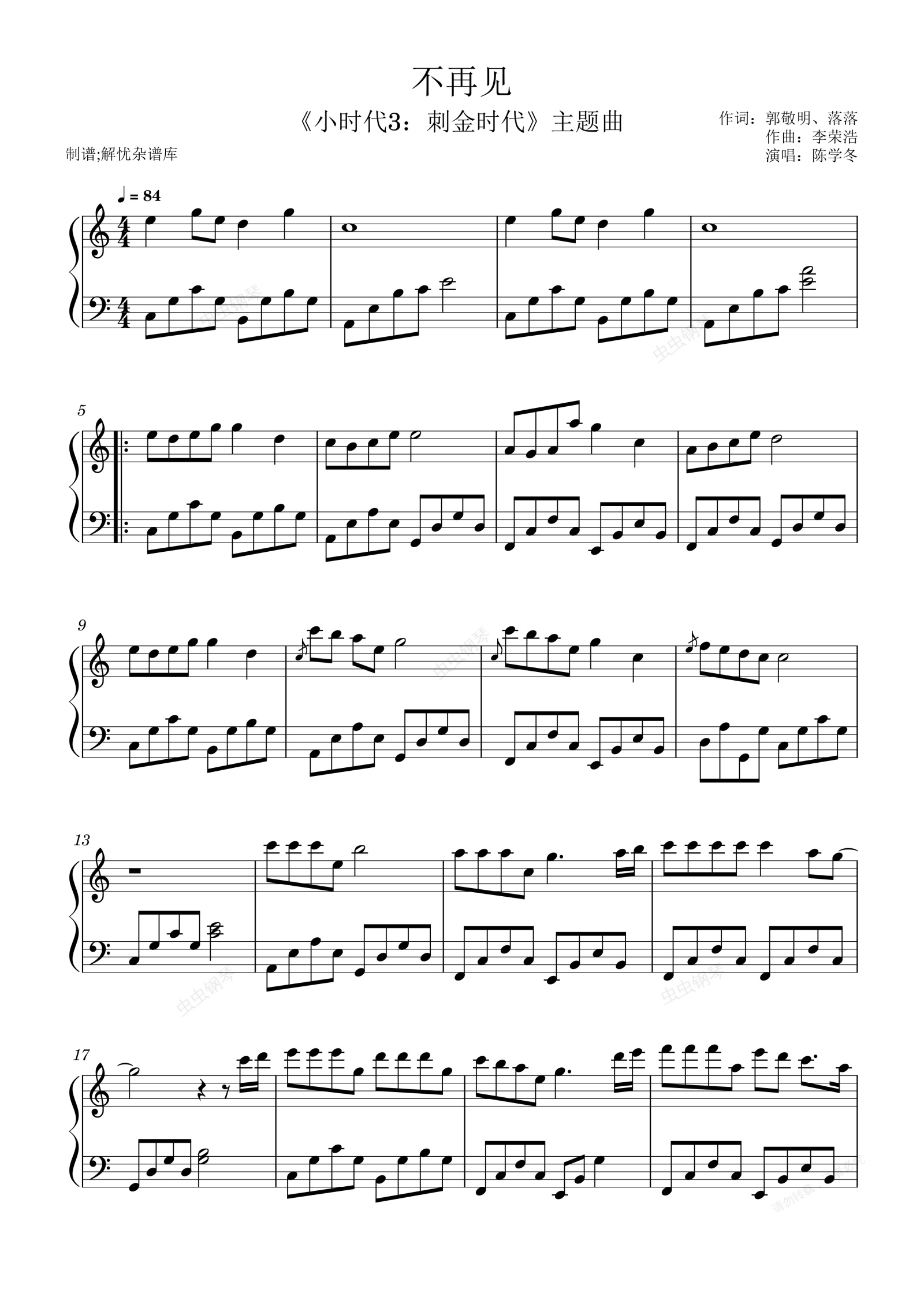 钢琴谱:不再见《小时代3:刺金时代》主题曲