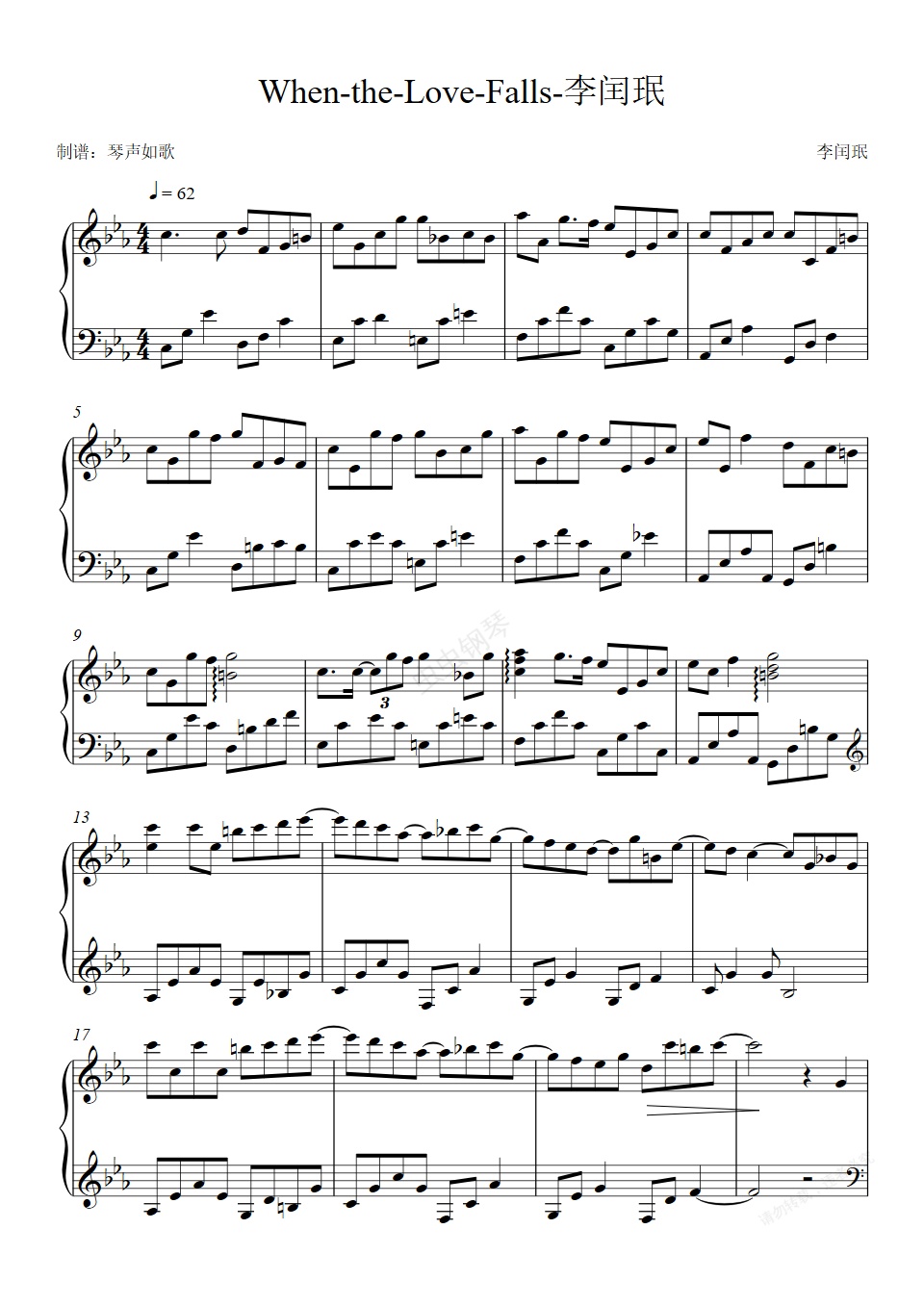 When the Love Falls是出身韩国首尔的新世纪钢琴演奏家李闰珉的曲子。李闰珉在韩国出生英国长大,曾就学于英国伦敦'The' 特别音乐学校,后来毕业于 'King's' ,主修作曲。在他的音乐作品里,展现了兼融东方的抒情与西方的典雅细致的音乐风格。因主修古典钢琴与作曲,展现他傲人的古典才情与欧洲人善感的特质;同时,纯净与清新的东方特色也呈现在他的音乐里。藉由细致的音乐性探触,他精致的演奏技巧,予人一种非凡艺术家的深刻印象。是韩国偶像剧大导尹锡湖御用钢琴手。