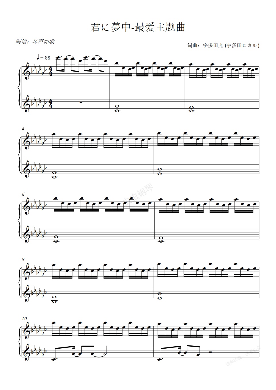 钢琴谱:君に夢中-原调《最爱主题曲》 [超高还原钢琴独奏]