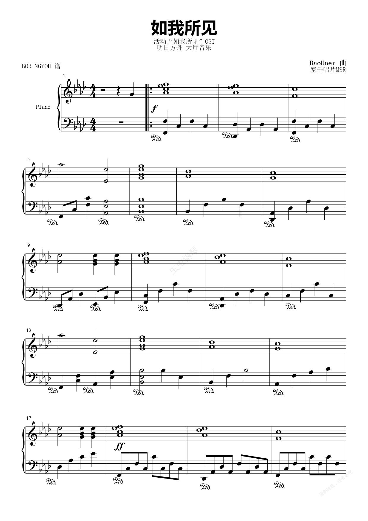 钢琴谱:明日方舟大厅&活动OST《如我所见》