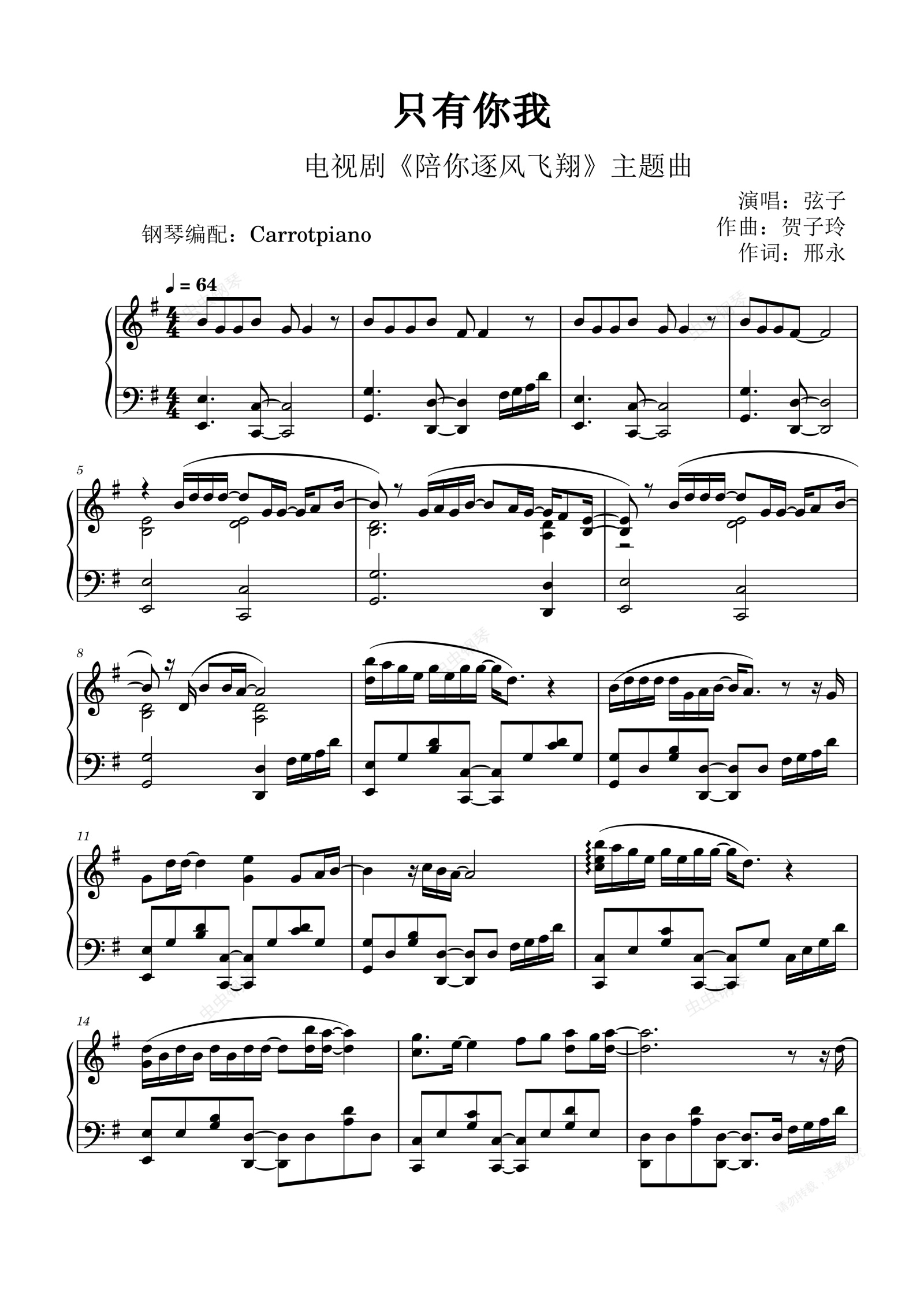 钢琴谱:弦子 - 只有你我《陪你逐风飞翔》电视剧主题曲