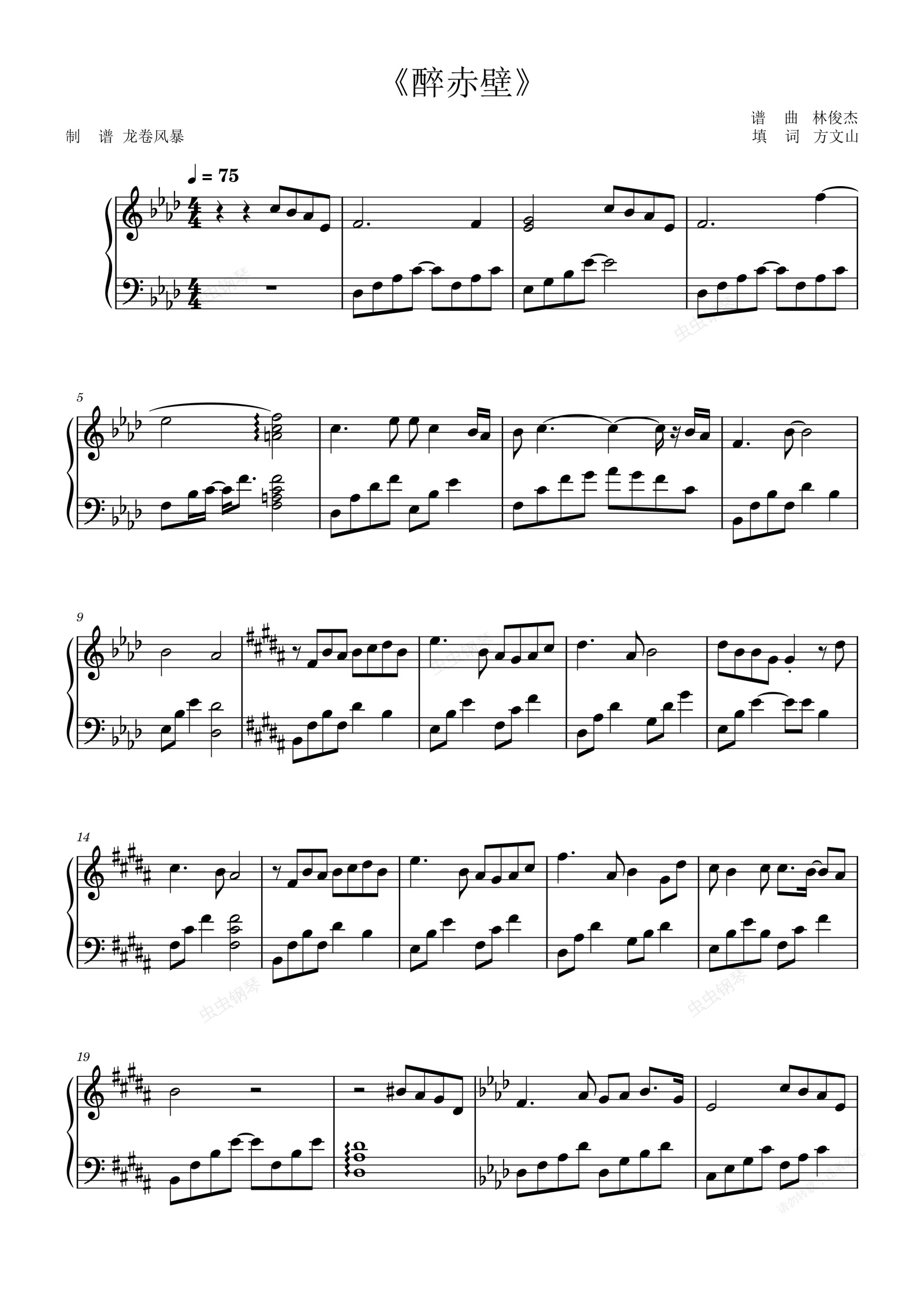 钢琴谱:《醉赤壁》林俊杰(完美演奏版)
