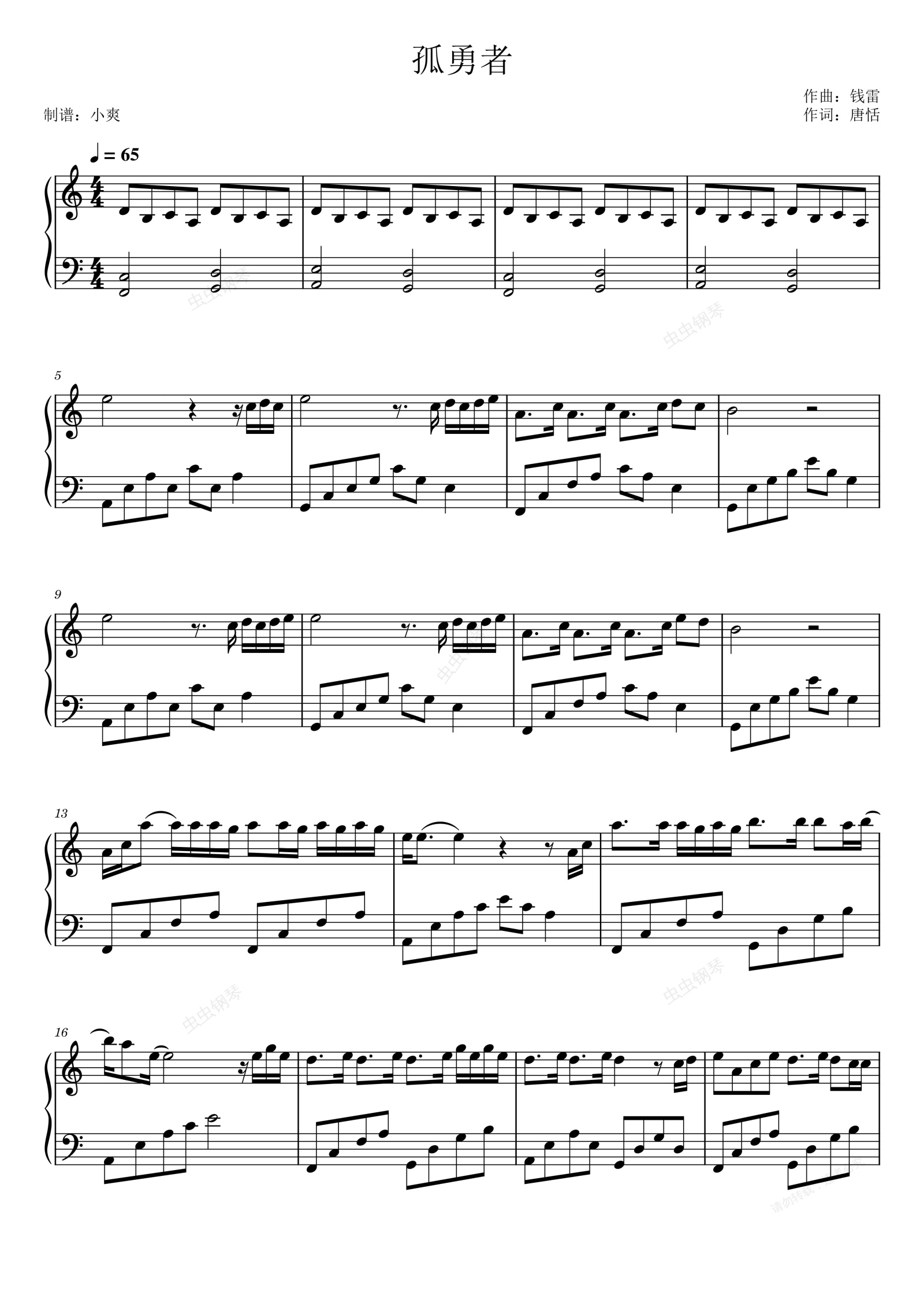 钢琴谱:孤勇者