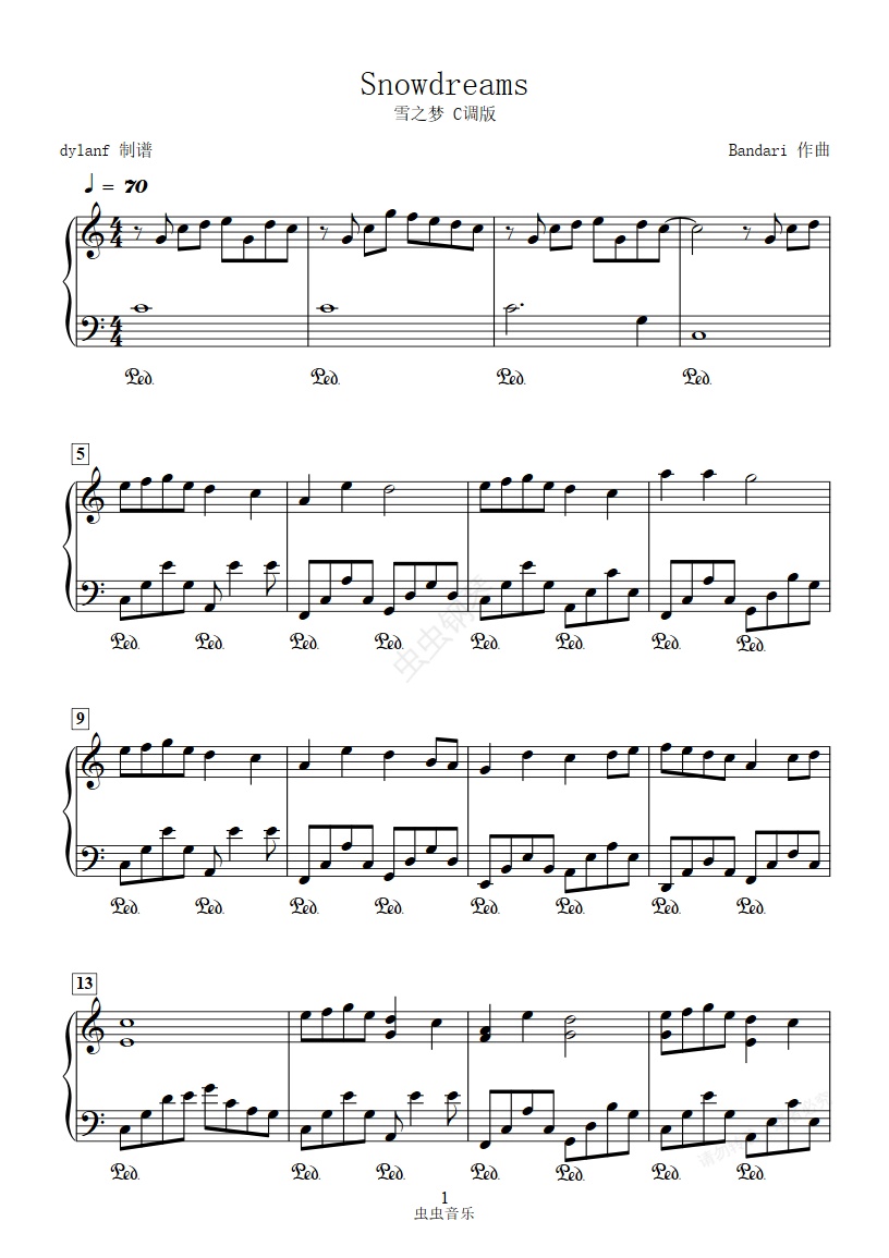 钢琴谱:C调易弹 雪之梦 班得瑞Bandari Snowdreams