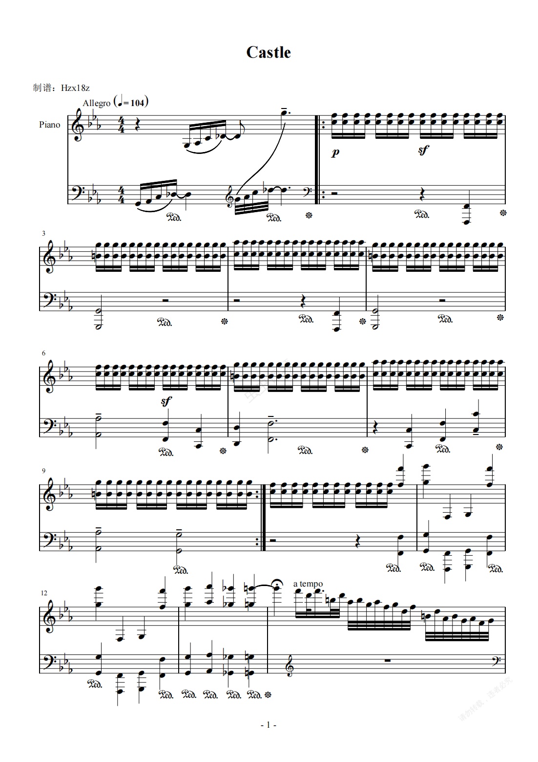 钢琴谱:【超级马里奥】Castle [ Super Mario World ]