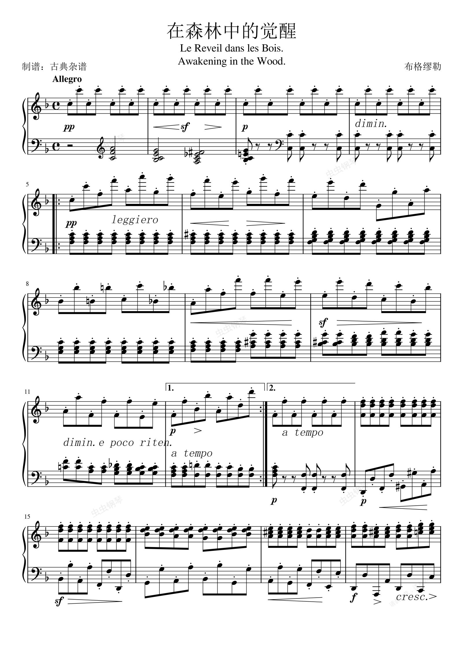钢琴谱:在森林中的觉醒 布格缪勒18首钢琴练习曲op.109