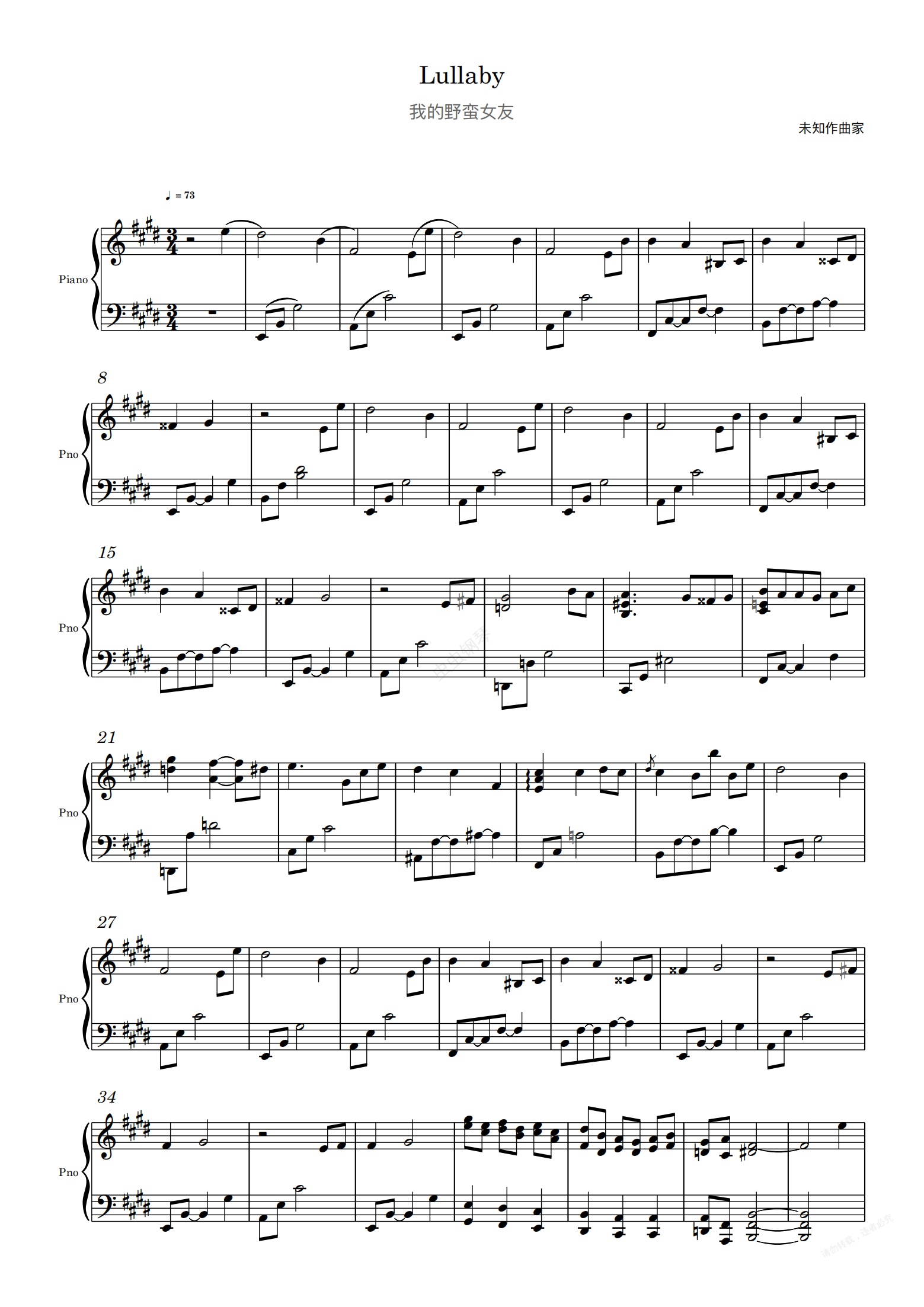钢琴谱:Lullaby