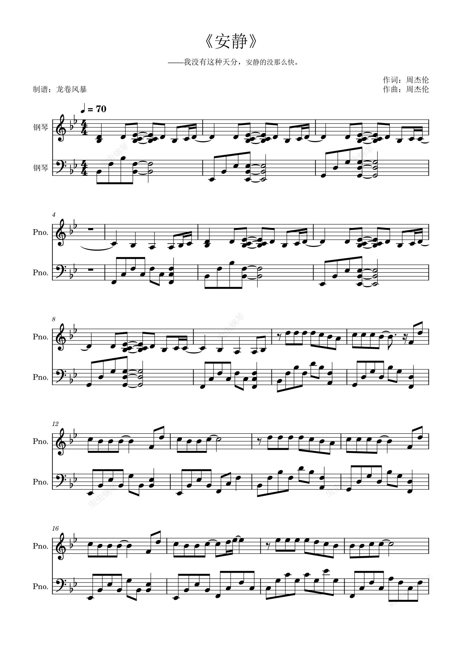 钢琴谱:《安静》周杰伦(唯美演奏版)