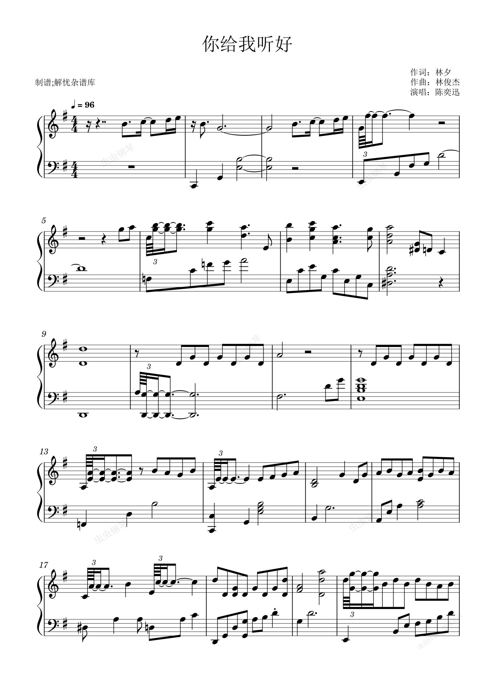 钢琴谱:你给我听好