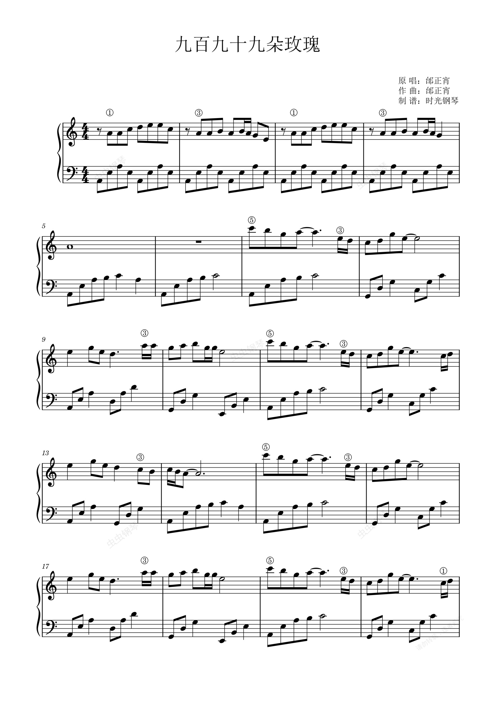 钢琴谱:九百九十九朵玫瑰