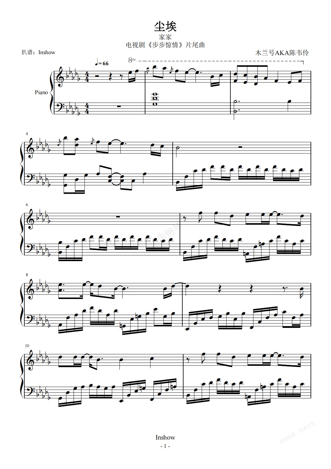 钢琴谱:尘埃【原调独奏】- 家家 - (《步步惊情》片尾曲)