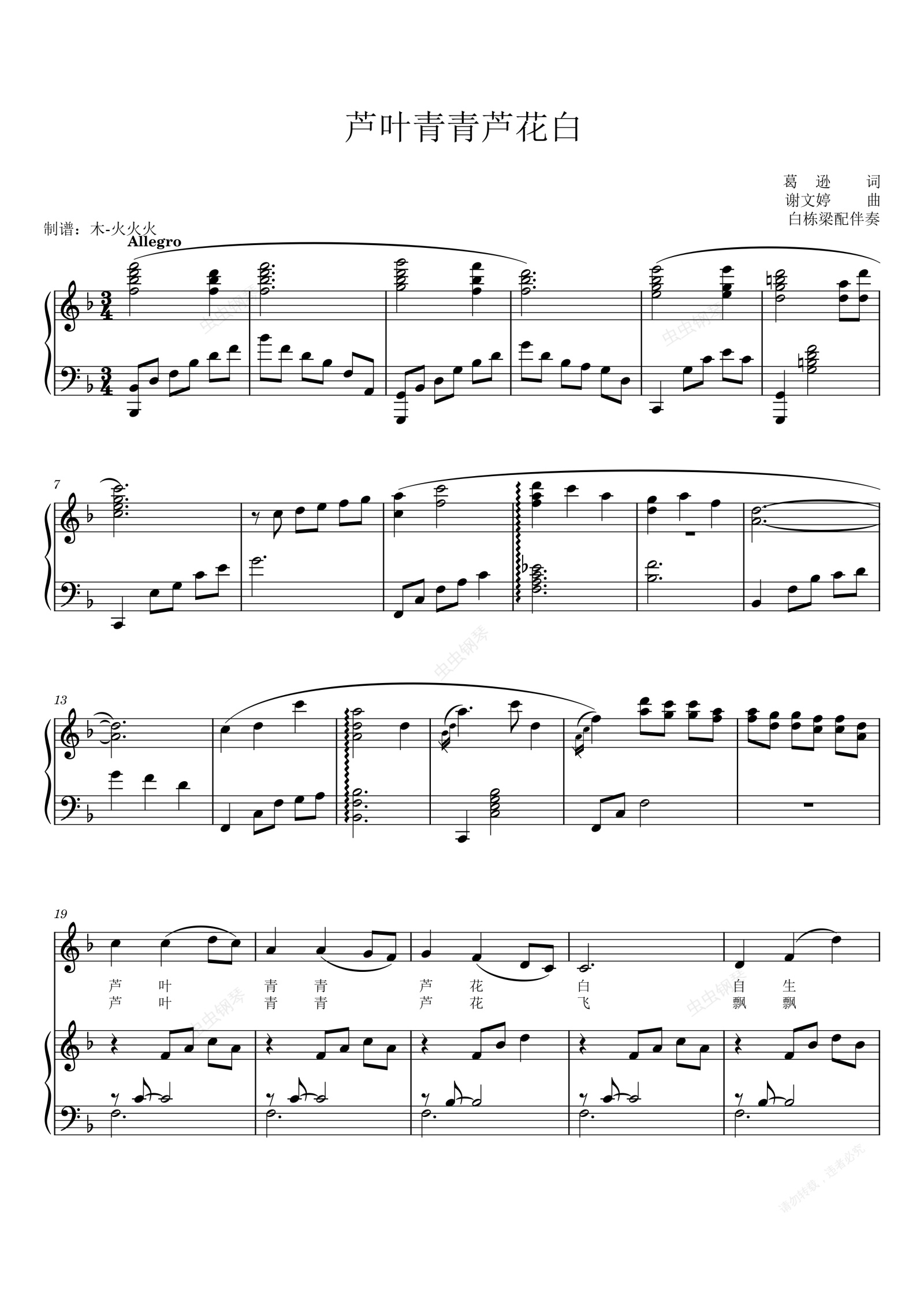 钢琴谱:艺考正谱伴奏:芦叶青青芦花白-F调