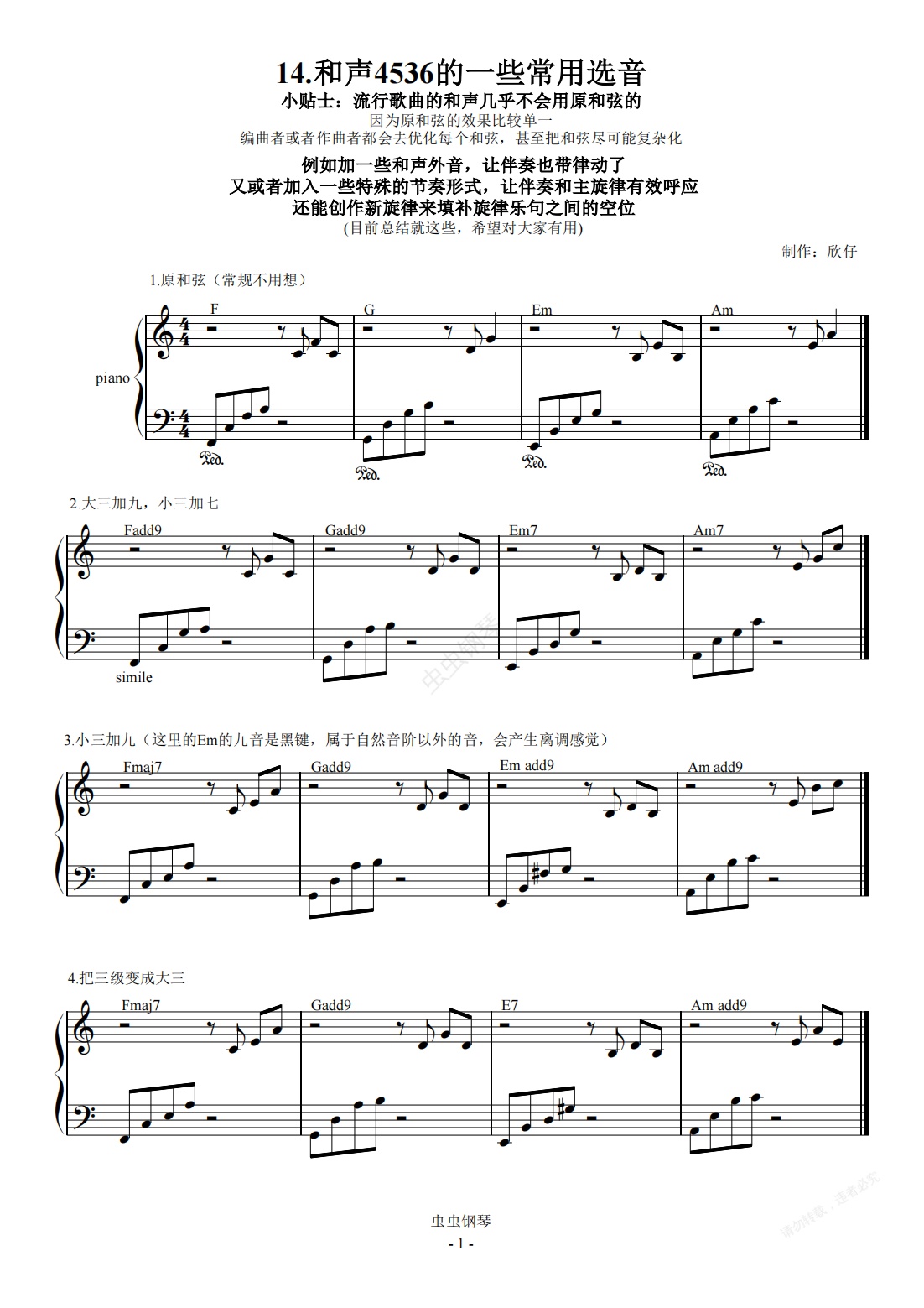 钢琴谱:14.4536的一些常用选音(关于伴奏的那些)