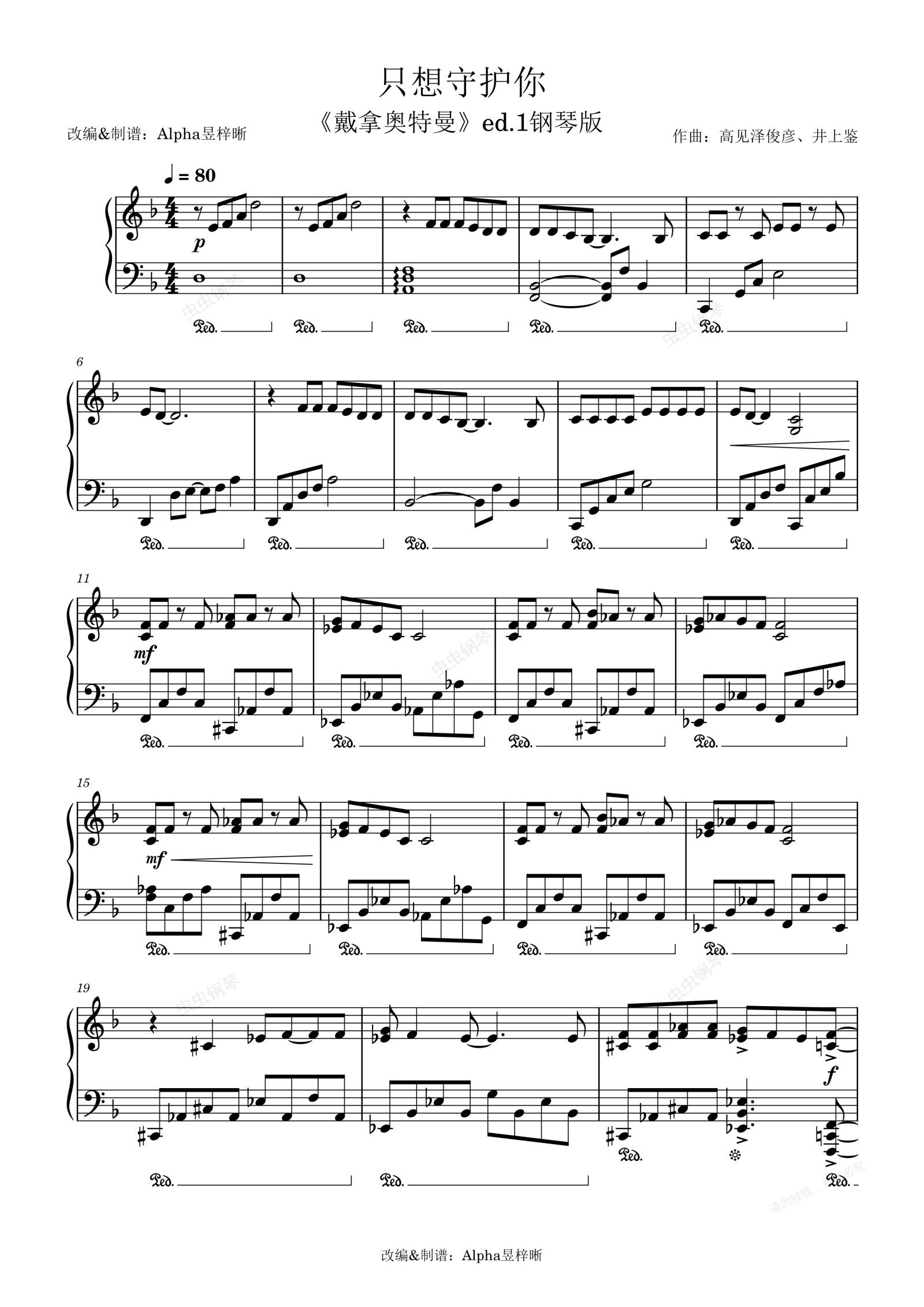 钢琴谱:只想守护你
