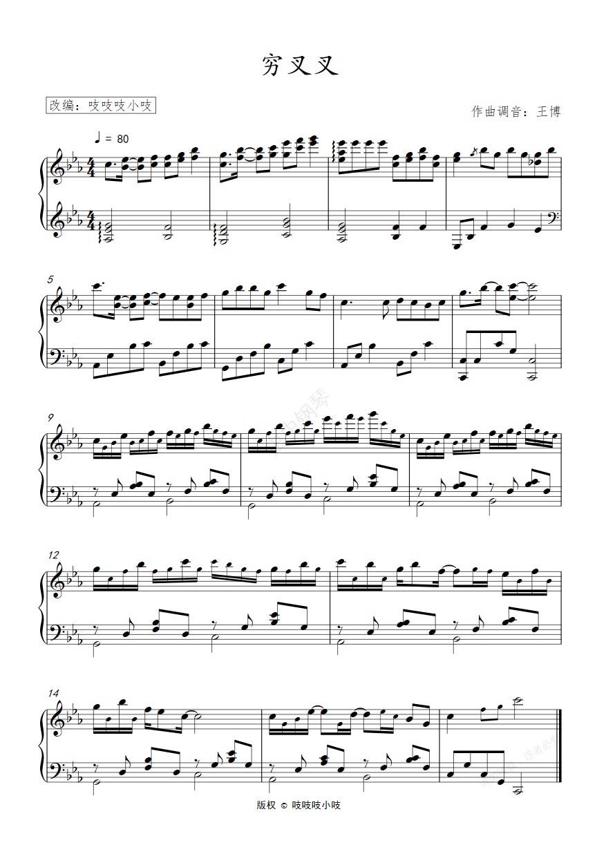 钢琴谱:穷叉叉 抒情娱乐版