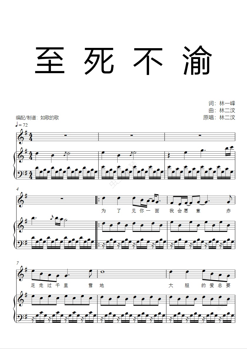 钢琴谱:至死不渝-旋律+钢伴婚礼与求爱氛围音乐