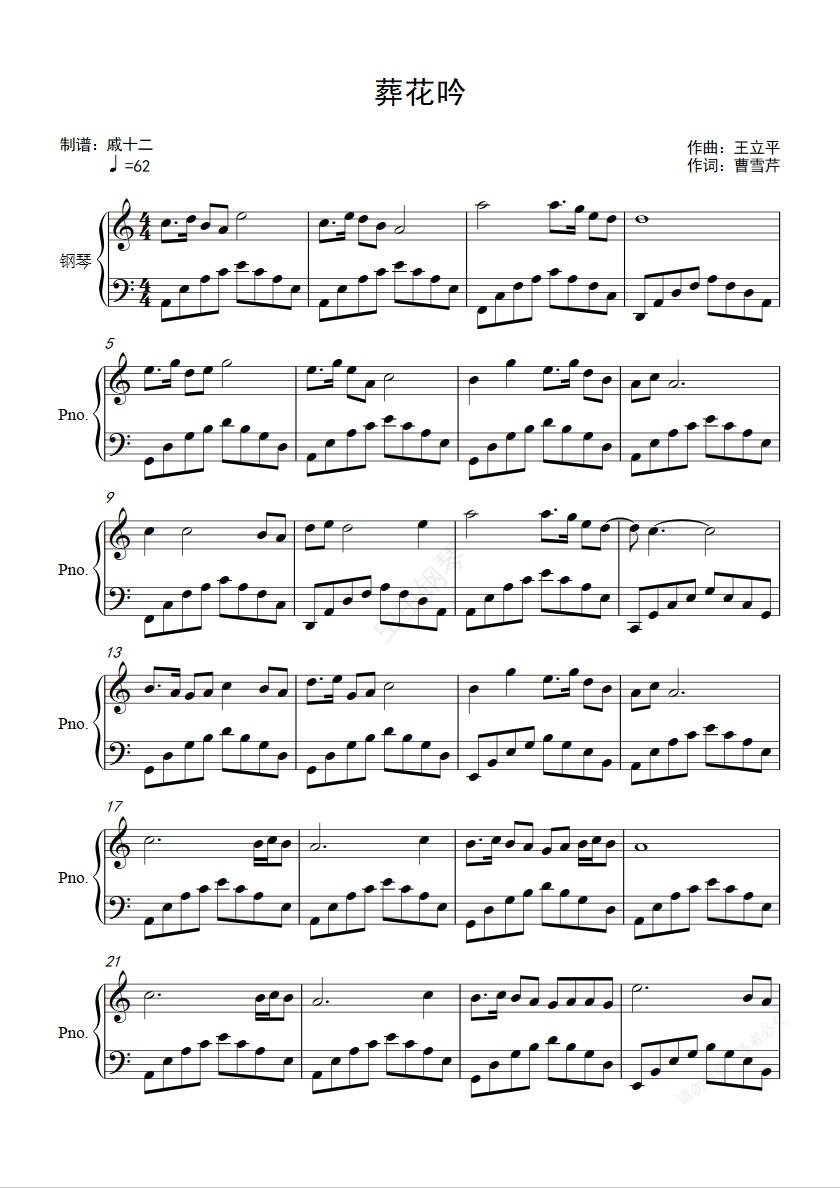钢琴谱:葬花吟-C调简单版-红楼梦