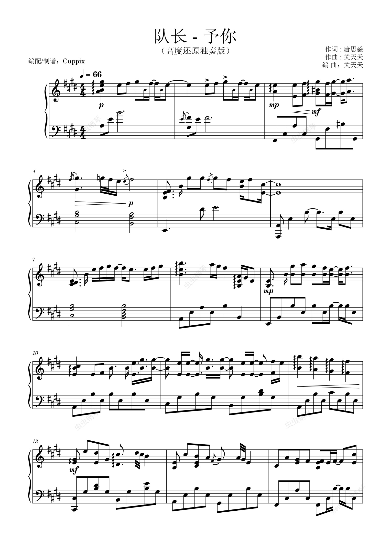 钢琴谱:队长《予你》Cuppix编配-高度还原独奏版(《解药》官方主题曲Ⅱ)