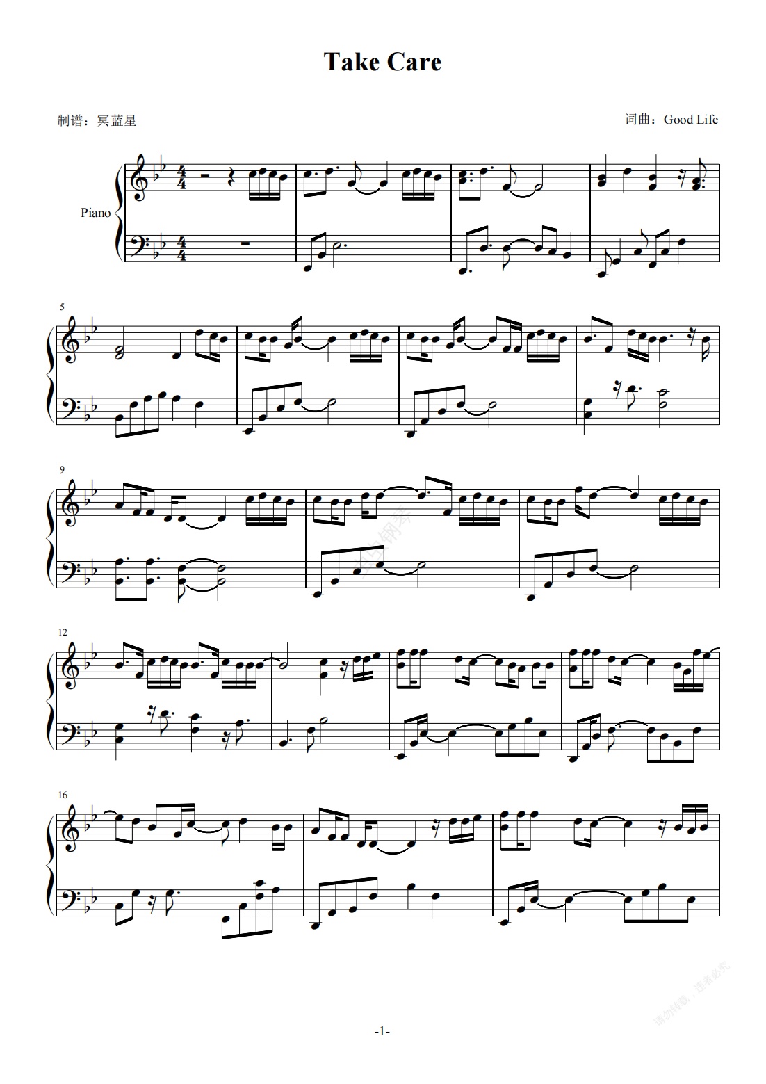 钢琴谱:Take Care/잘 지내줘-Highlight-演奏谱