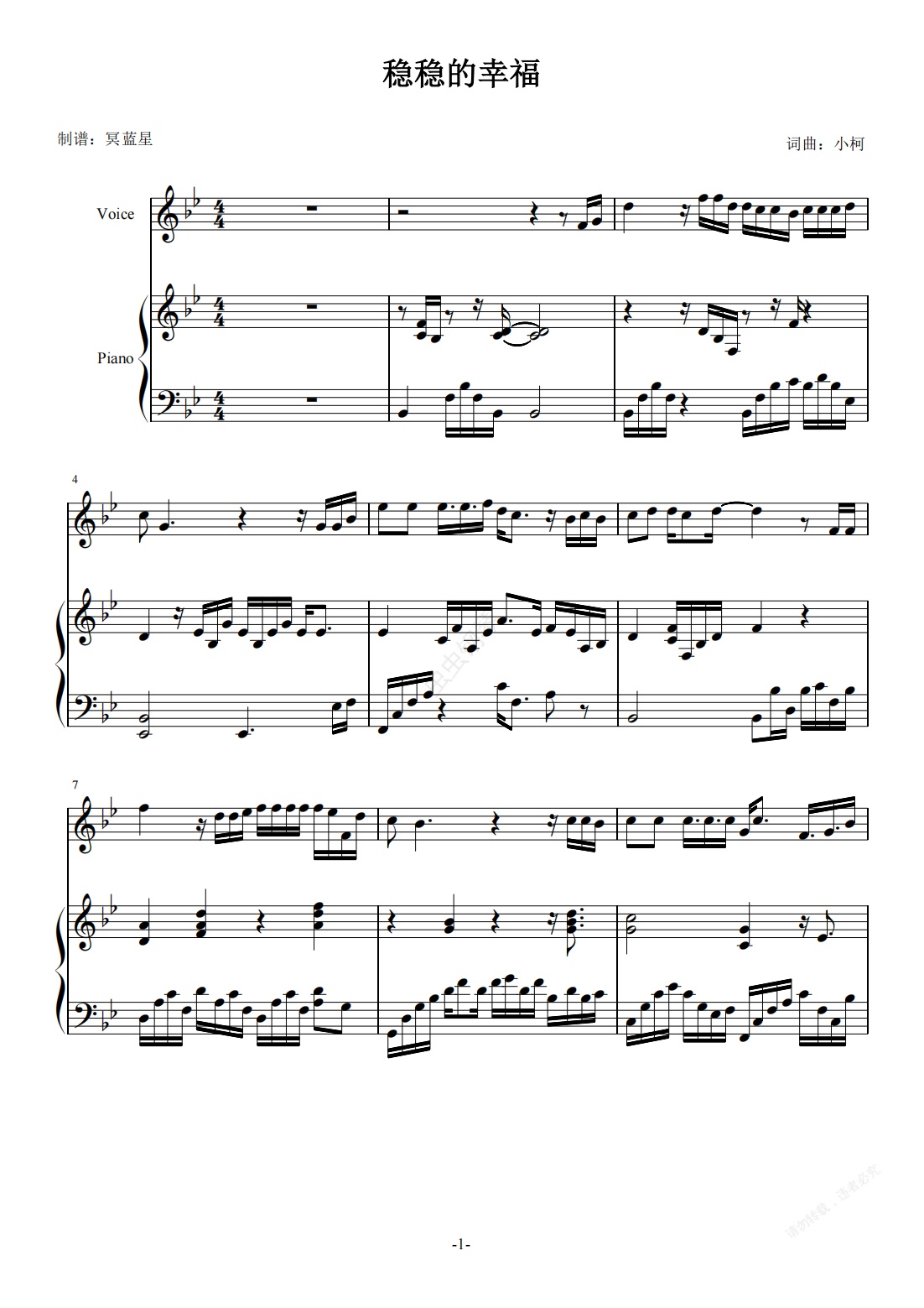 钢琴谱:稳稳的幸福-小柯-伴奏谱