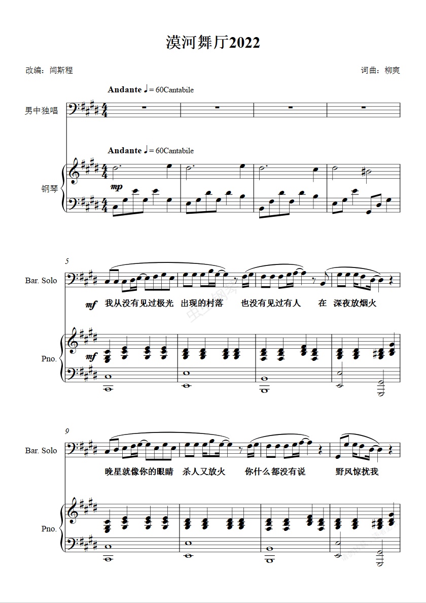 钢琴谱:漠河舞厅2022原版钢琴弹唱