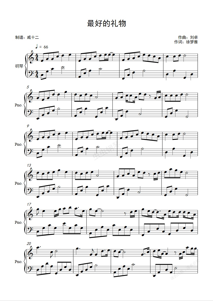 钢琴谱:最好的礼物-C调简单版-八角亭谜雾主题曲