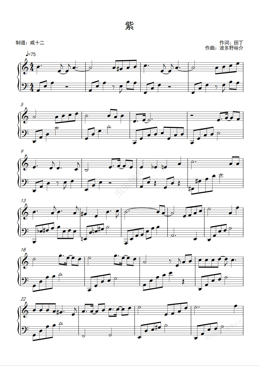 钢琴谱:紫-C调简单版-悟空传插曲