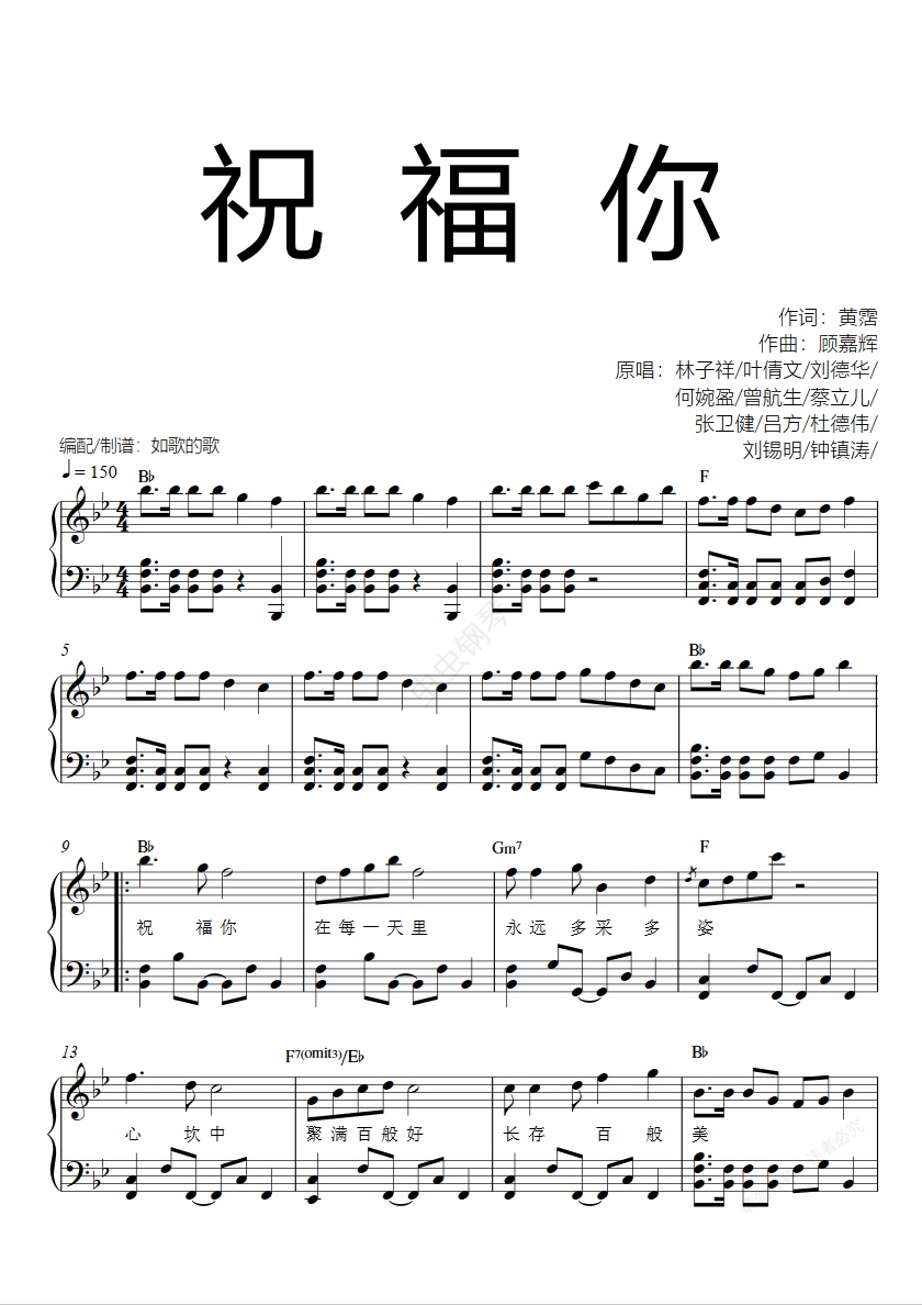 钢琴谱:祝福你-弹唱&独奏-华语群星贺岁新春拜年祝曲