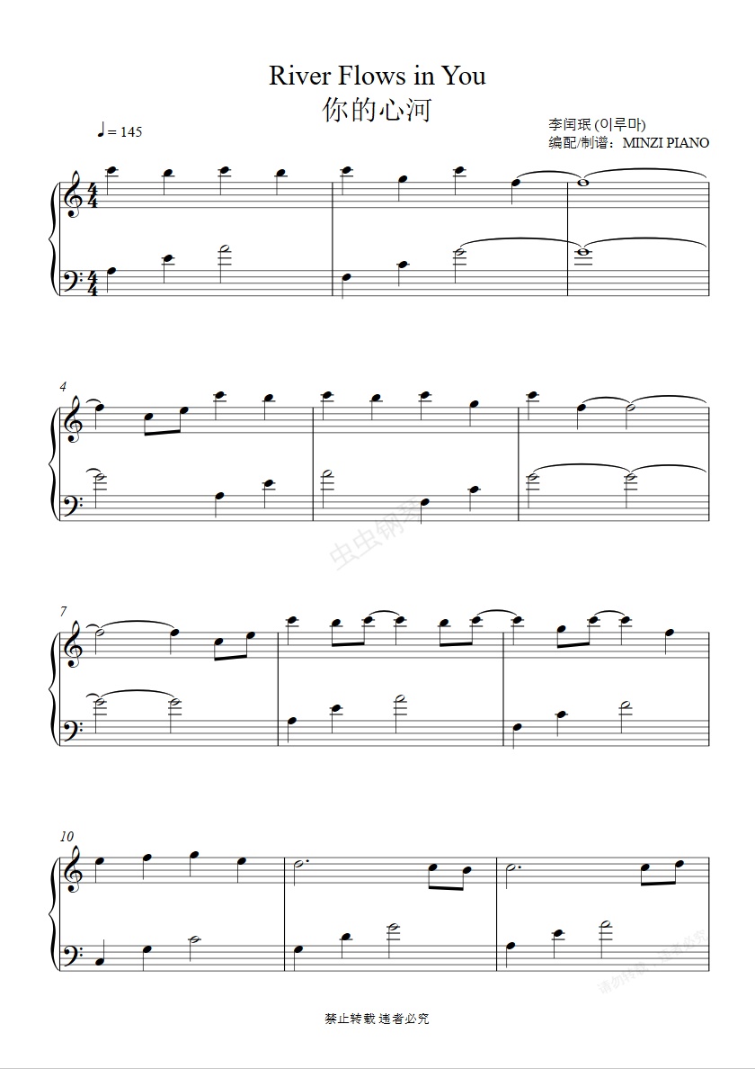 钢琴谱:C调简版《River Flows In You》Yiruma