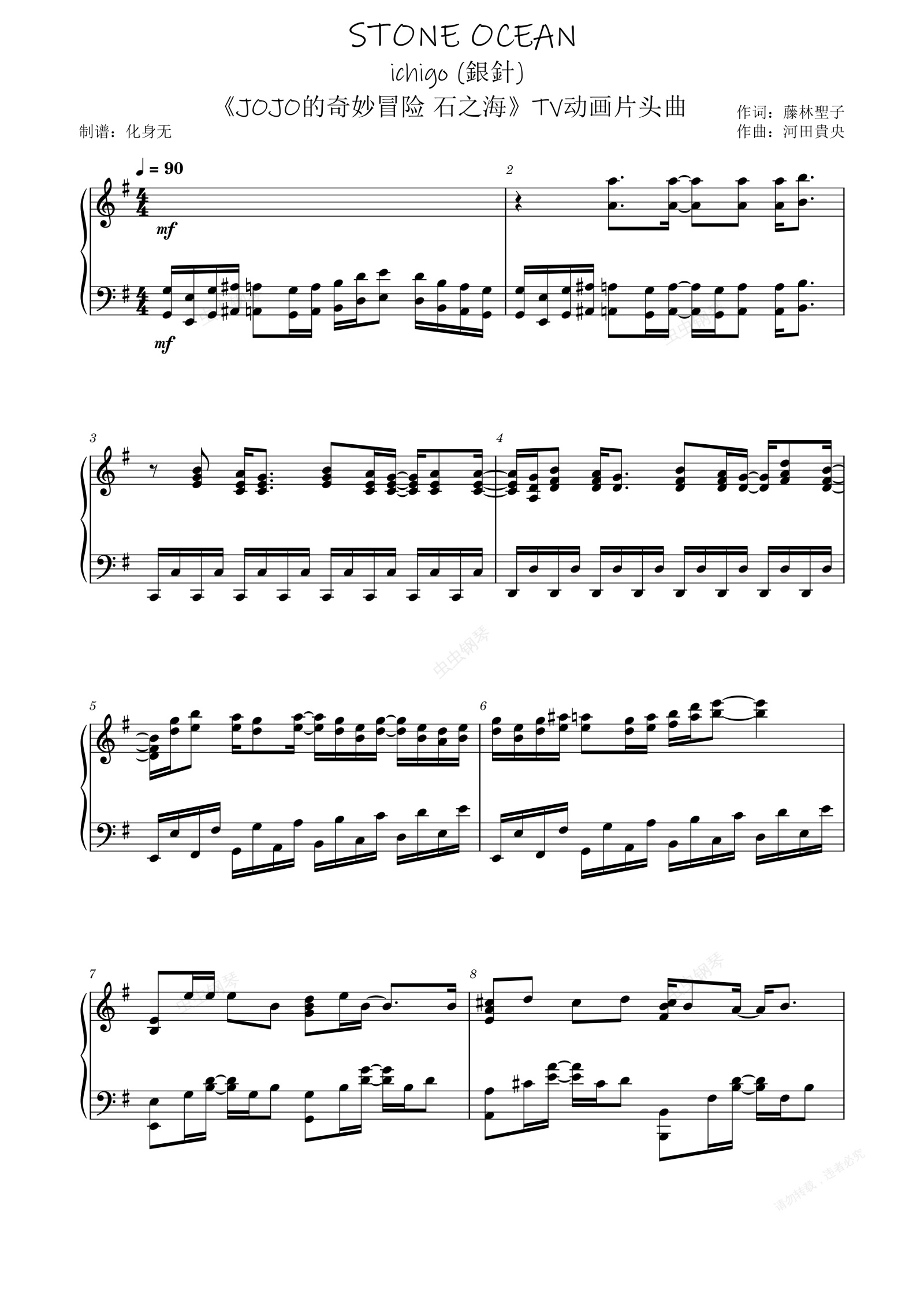 钢琴谱:STONE OCEAN 《JOJO的奇妙冒险 石之海》TV动画片头曲