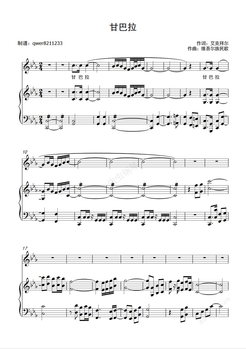 钢琴谱:郭瓦·加毛吉 - 甘巴拉