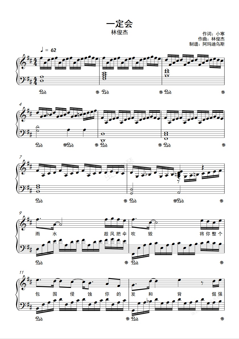 钢琴谱:林俊杰 <一定会> 原调完整版曲谱(附歌词)