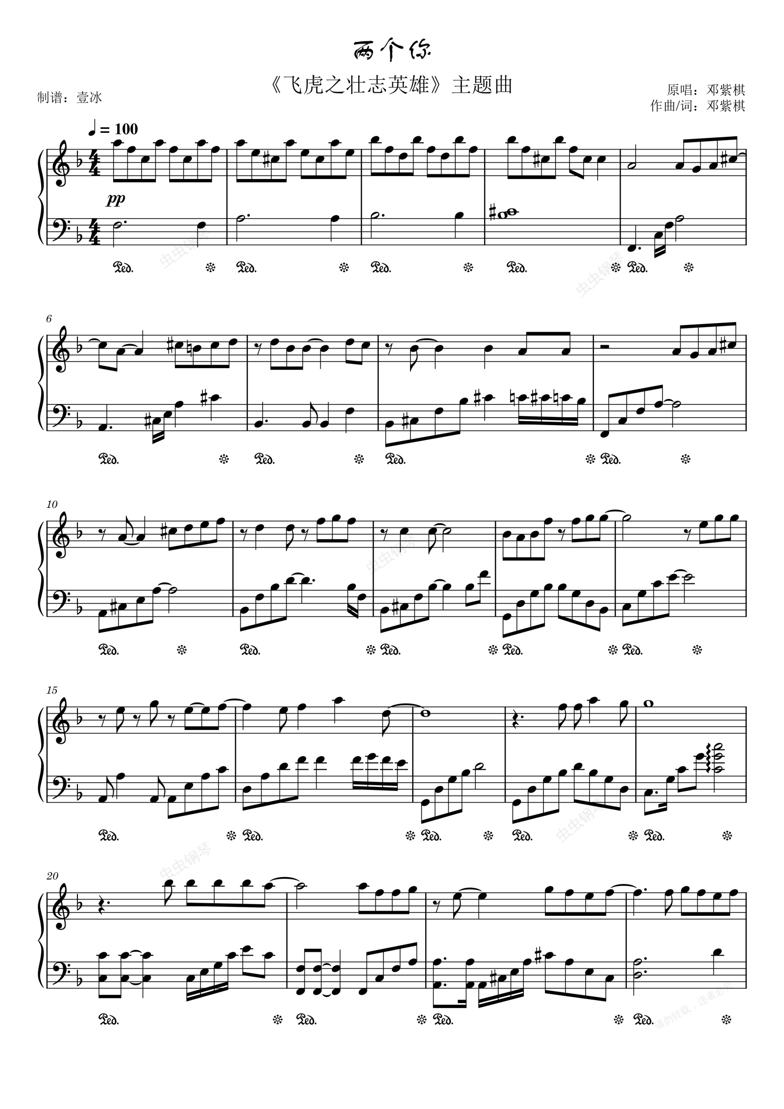 钢琴谱:两个你//《飞虎之壮志英雄》主题曲-原调
