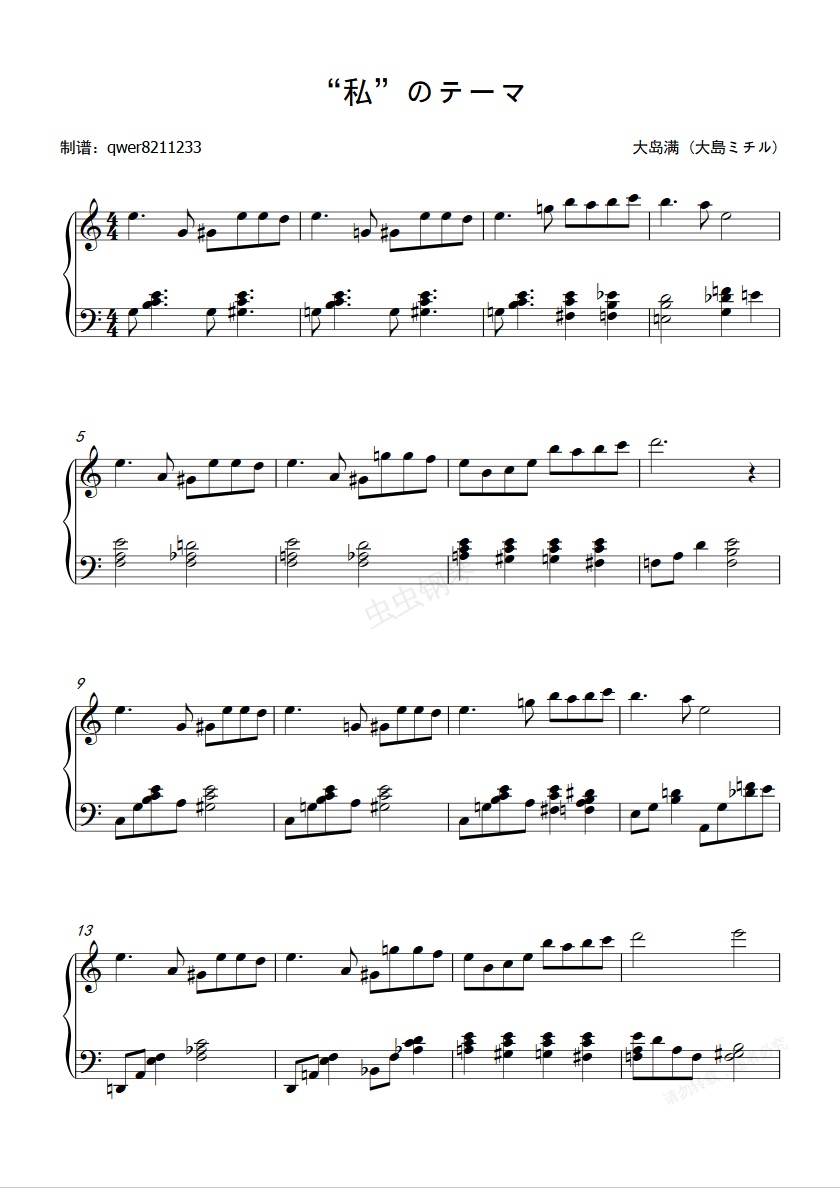 钢琴谱:大島ミチル - “私”のテーマ (Piano Ver.)