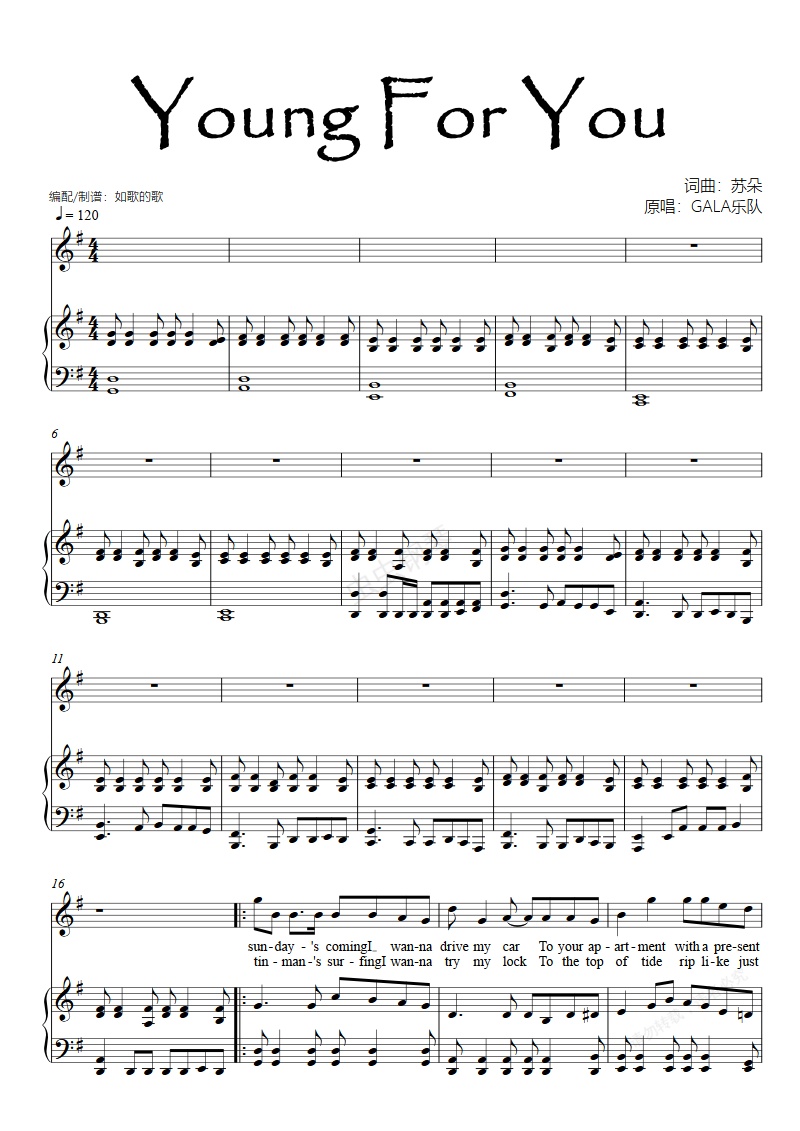 钢琴谱:Young For You旋律+钢伴SamsungGalaxy广告音乐-车祸摇滚京味英语GALA牛逼