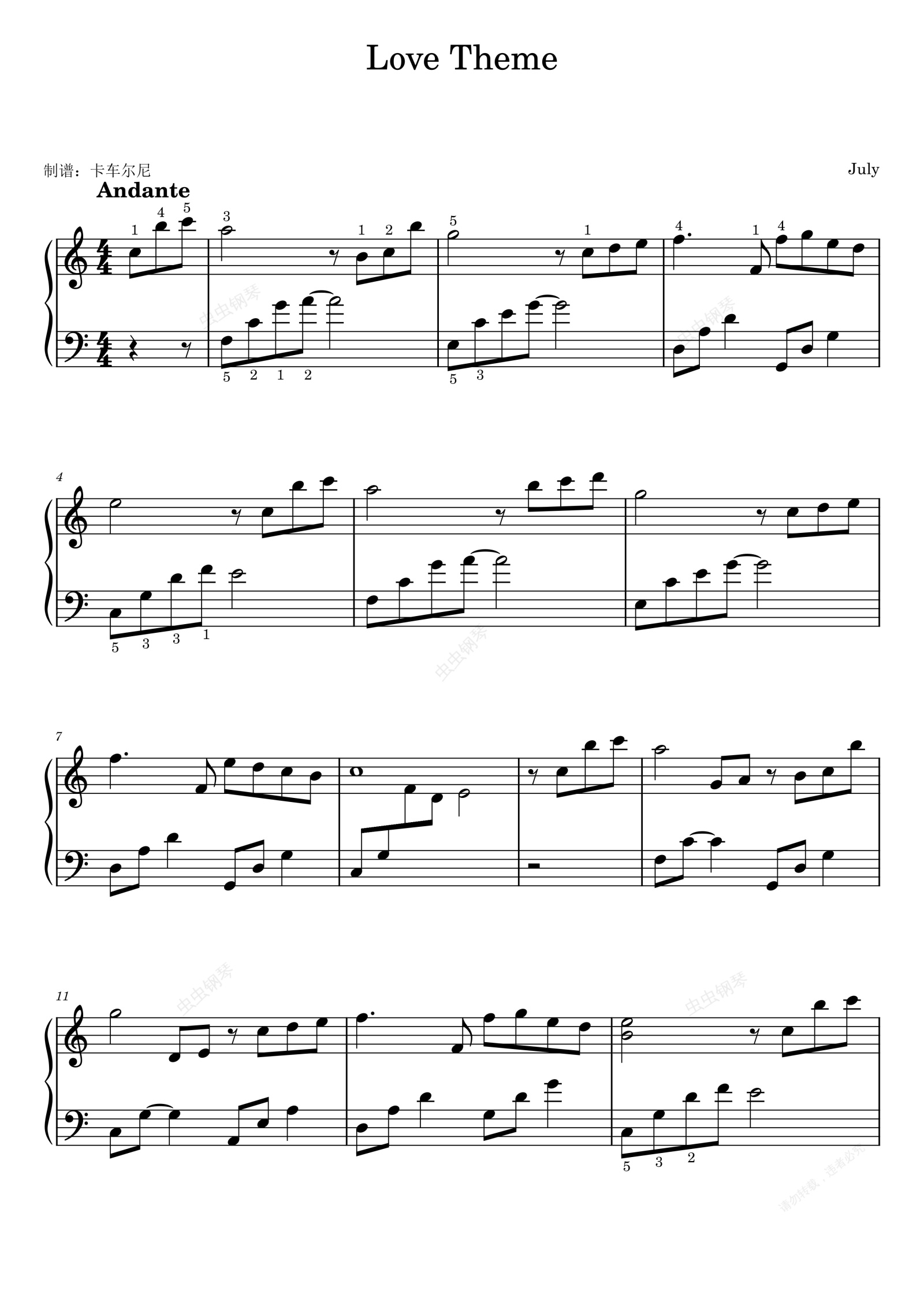钢琴谱:治愈系钢琴曲 Love Theme C大调 简单易弹