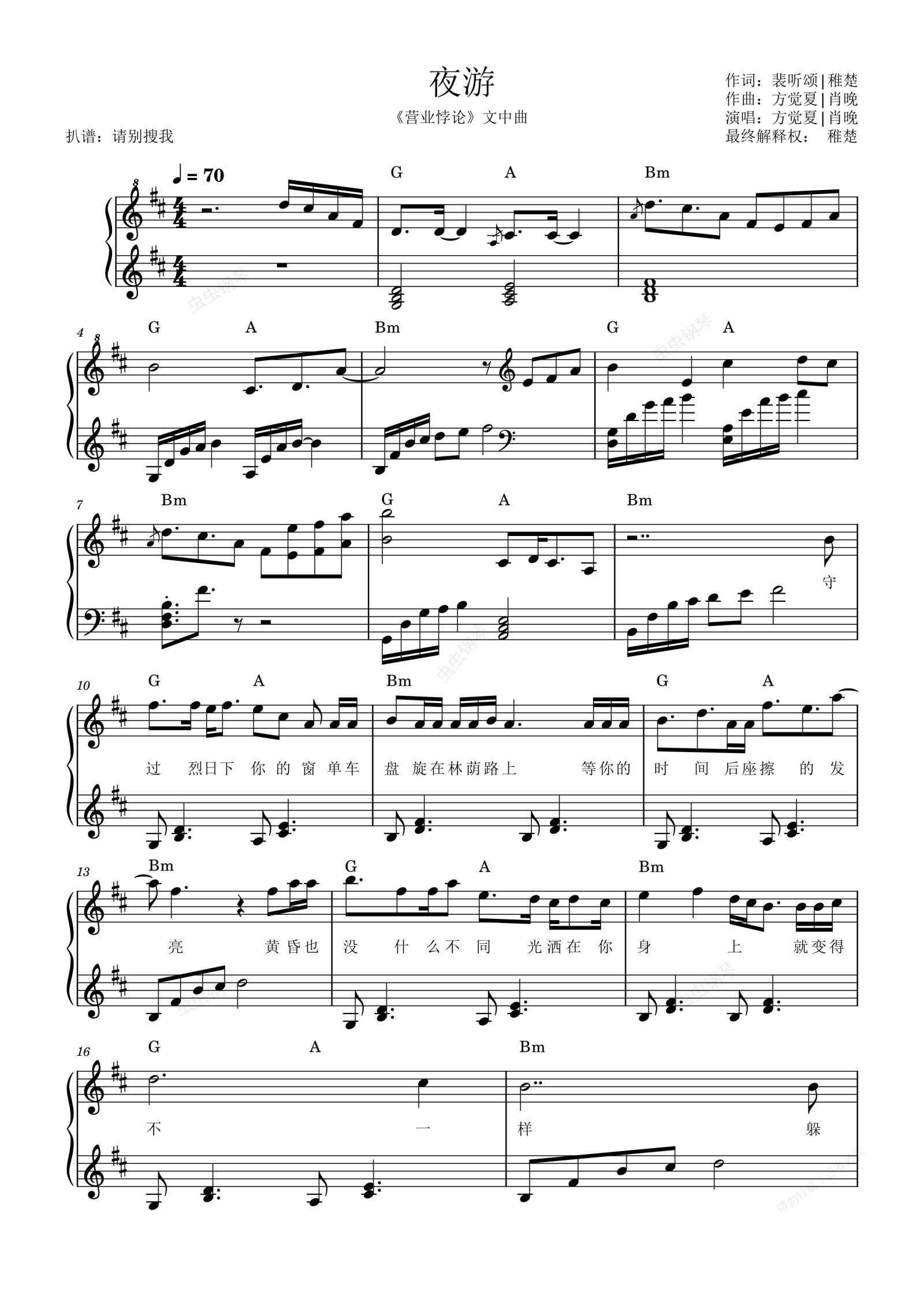 钢琴谱:【营业悖论】《夜游》肖晚