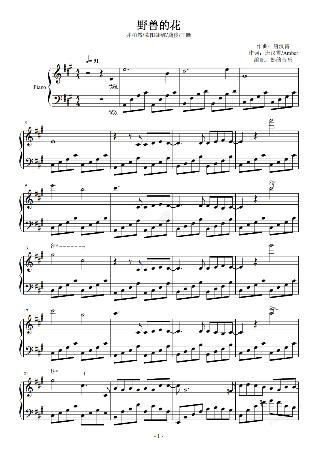 钢琴谱:野兽的花-井柏然/龚俊/王晰/欧阳娜娜 钢琴完美还原
