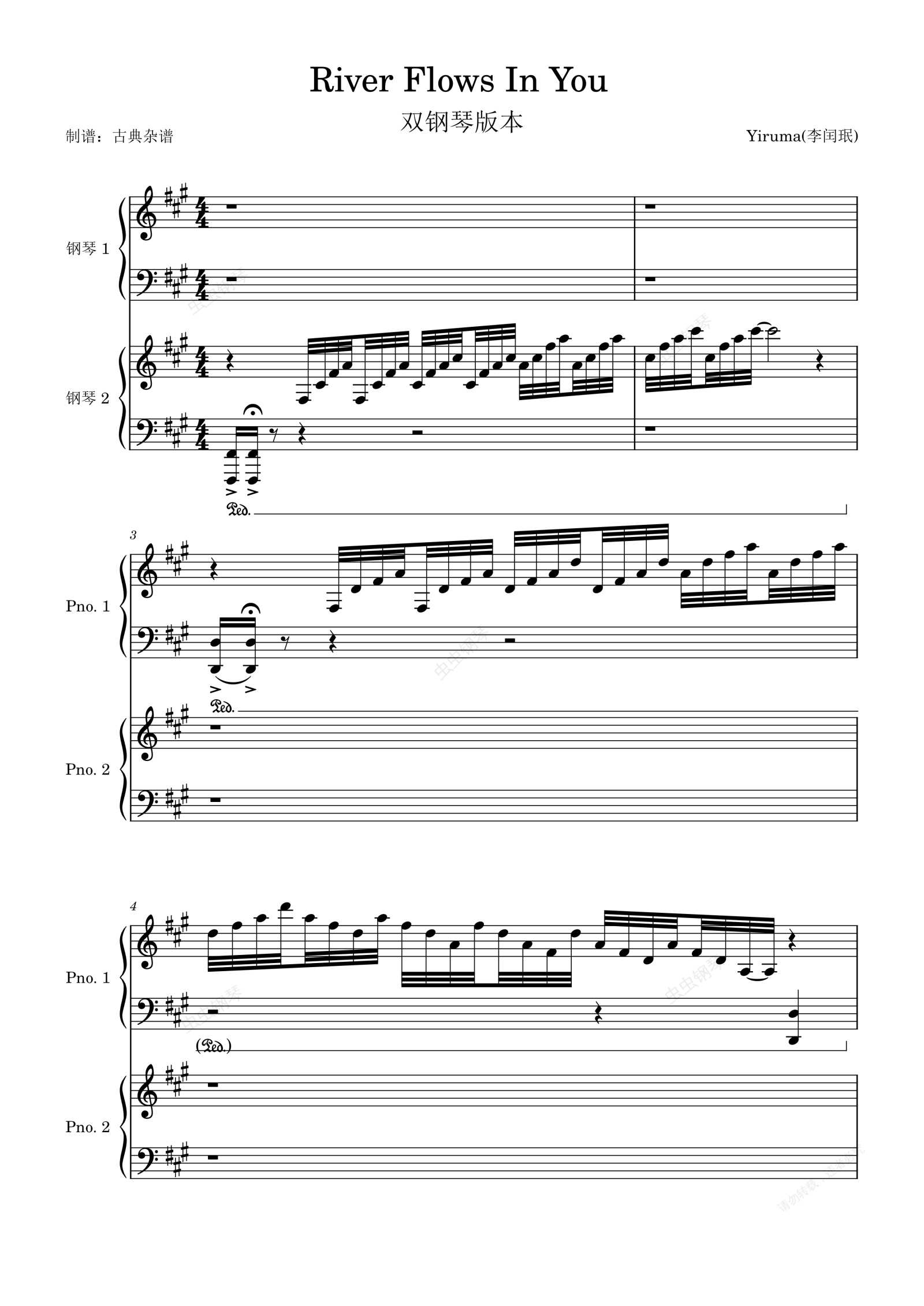钢琴谱:river flows in you刘宪华Yiruma双钢版本