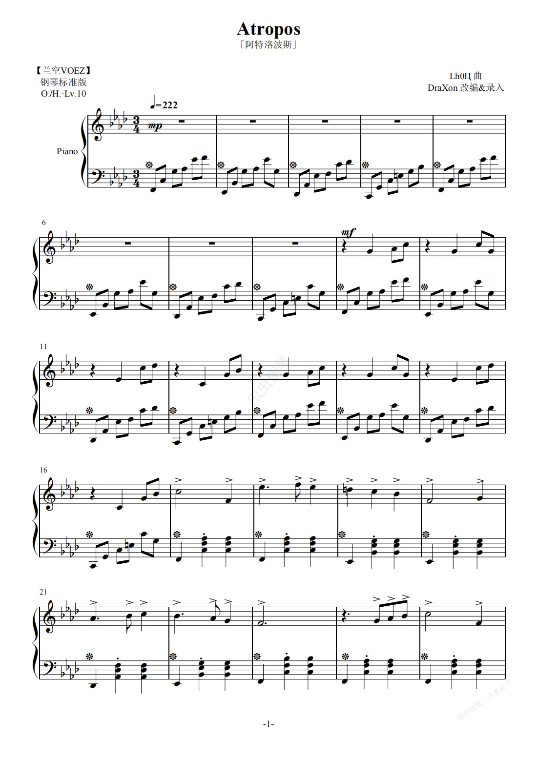 钢琴谱:Atropos(by LhθЦ in VOEZ/兰空)