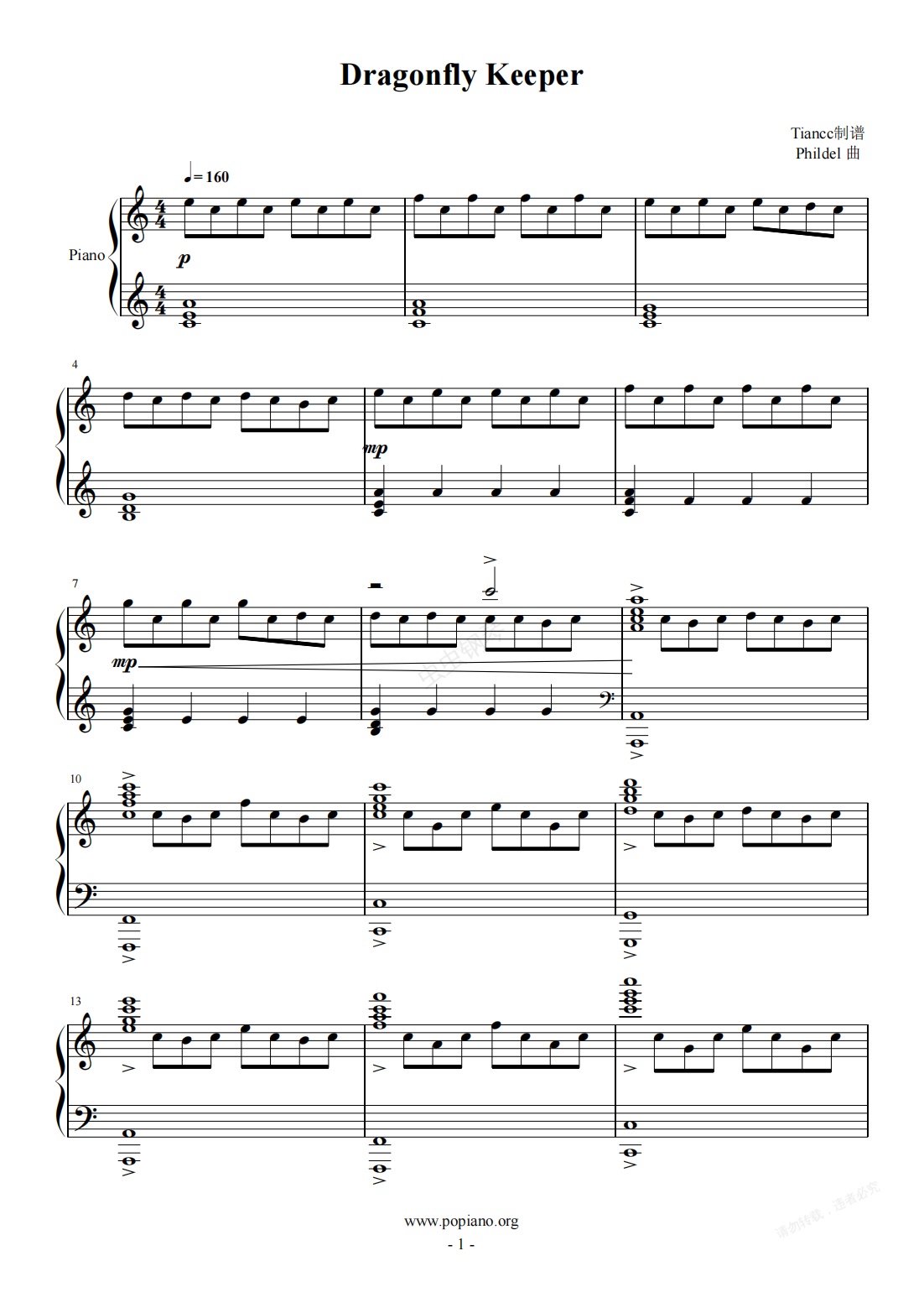 钢琴谱:《Dragonfly Keeper》极品背景纯音乐,299难度