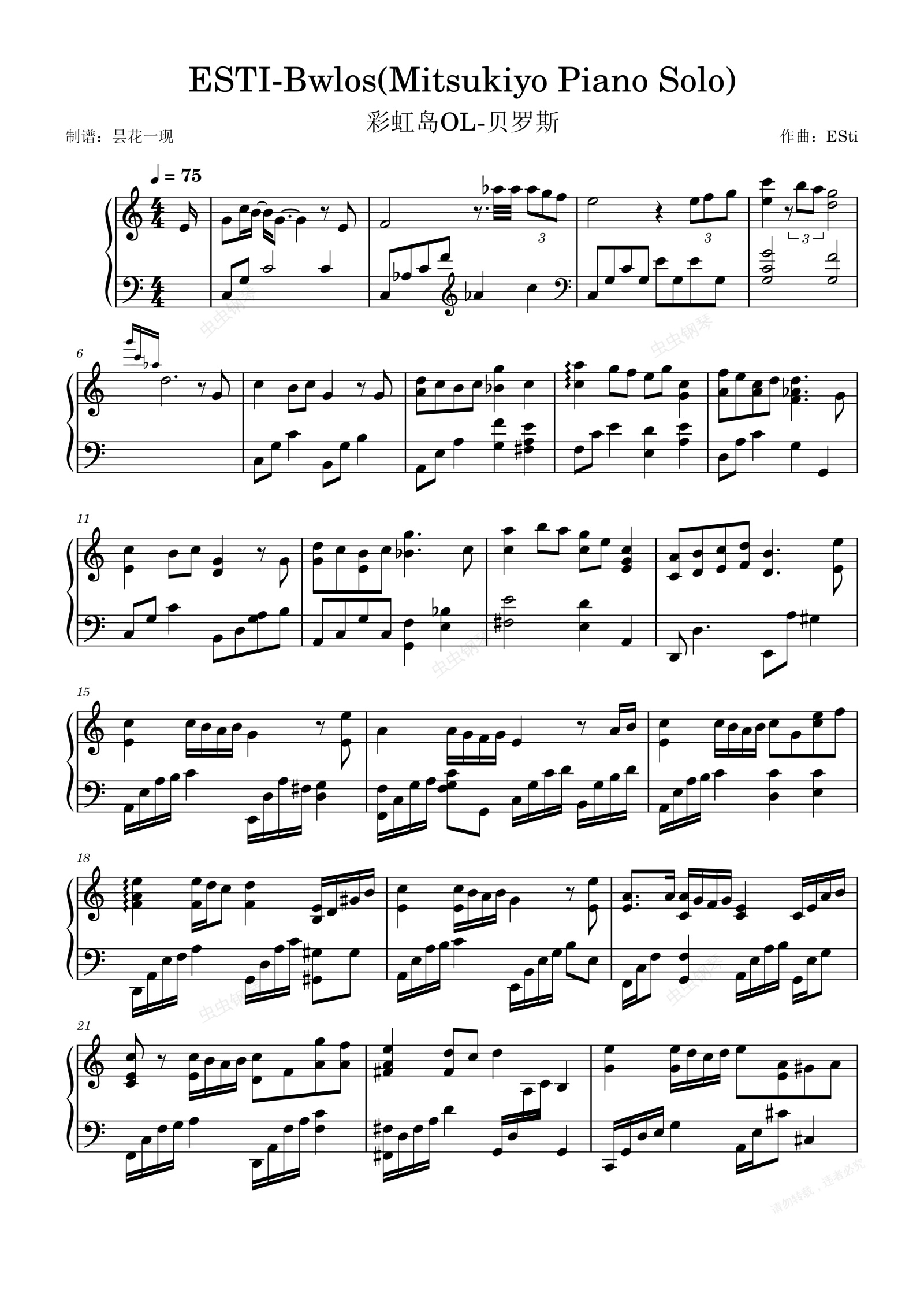钢琴谱:彩虹岛-贝罗斯,C大调独奏