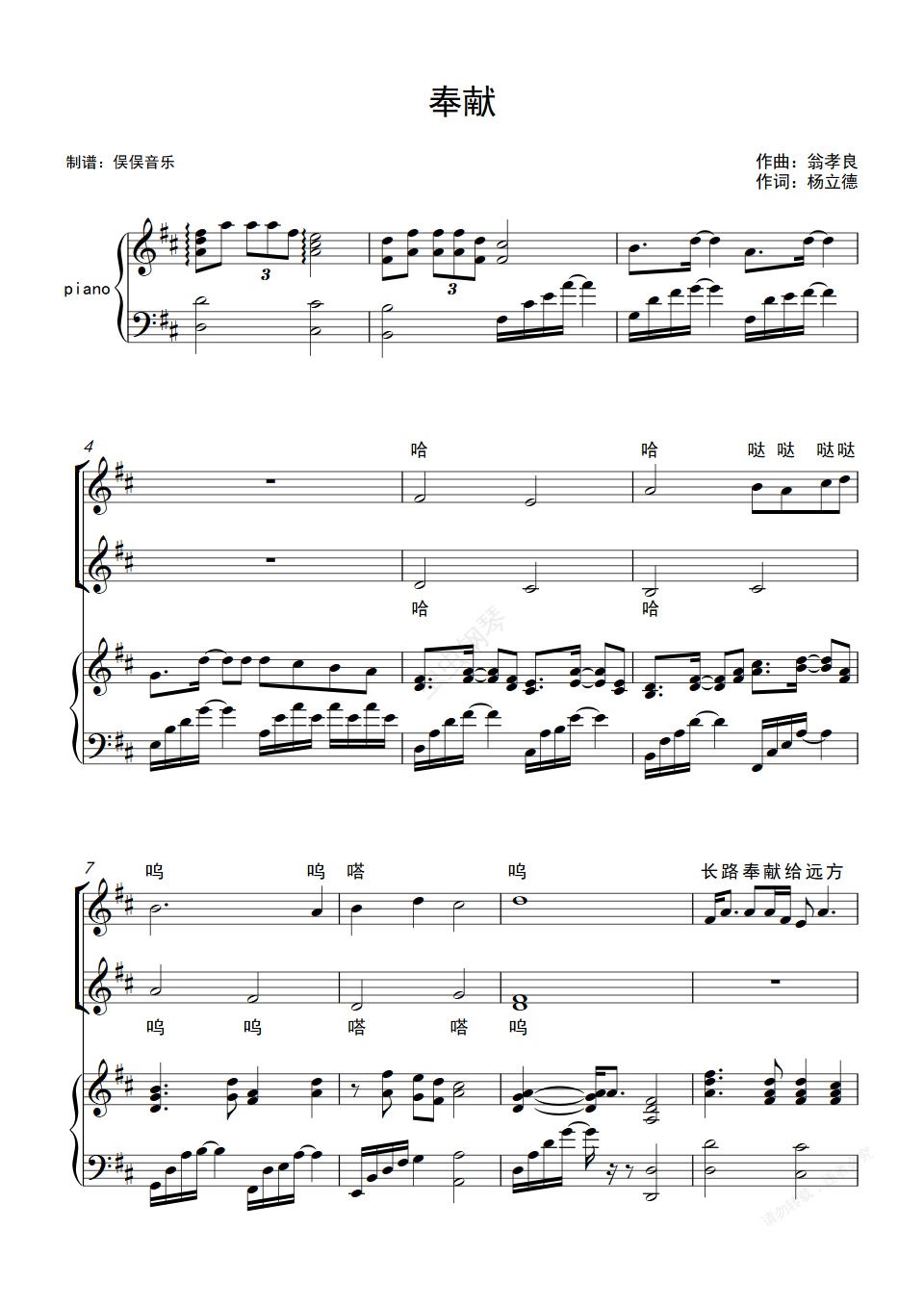 钢琴谱:苏芮 - 奉献(合唱伴奏谱)