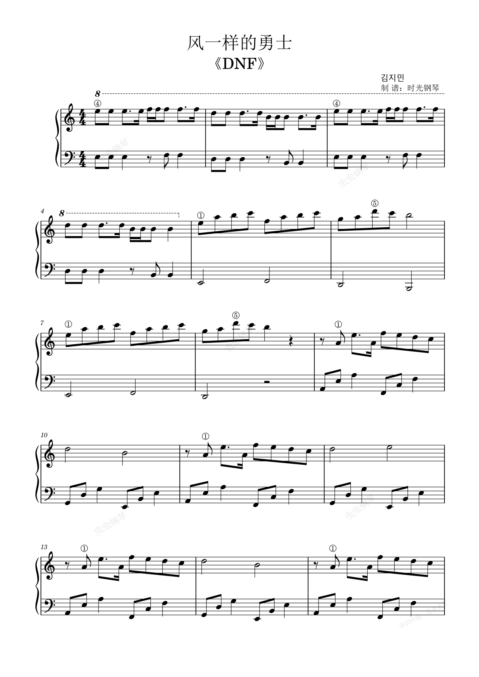 钢琴谱:风一样的勇士/바람의 너를《DNF》