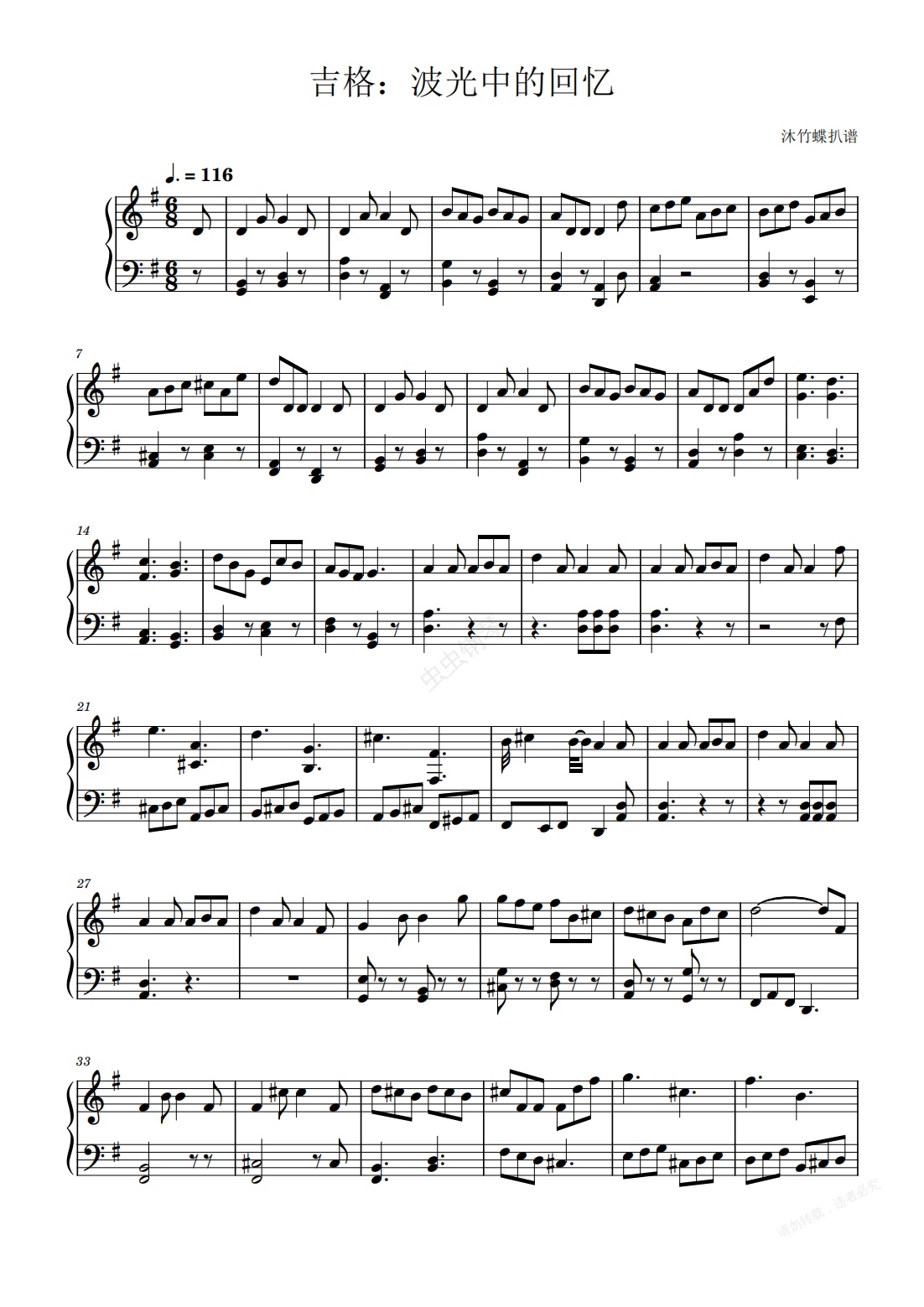 钢琴谱:吉格:波光中的回忆 哈利波特魔法觉醒舞曲