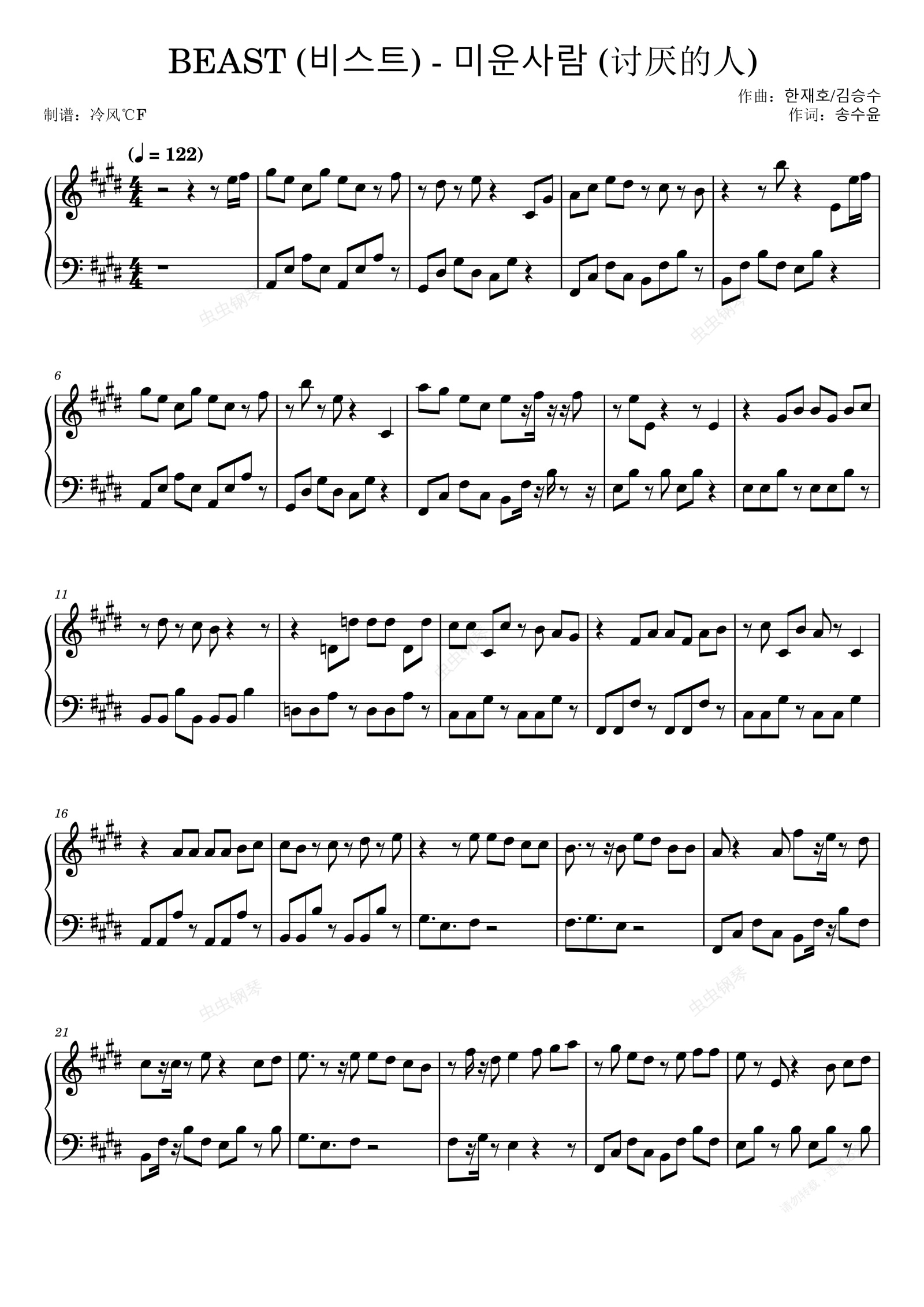 钢琴谱:BEAST (비스트) - 미운사람 (讨厌的人)