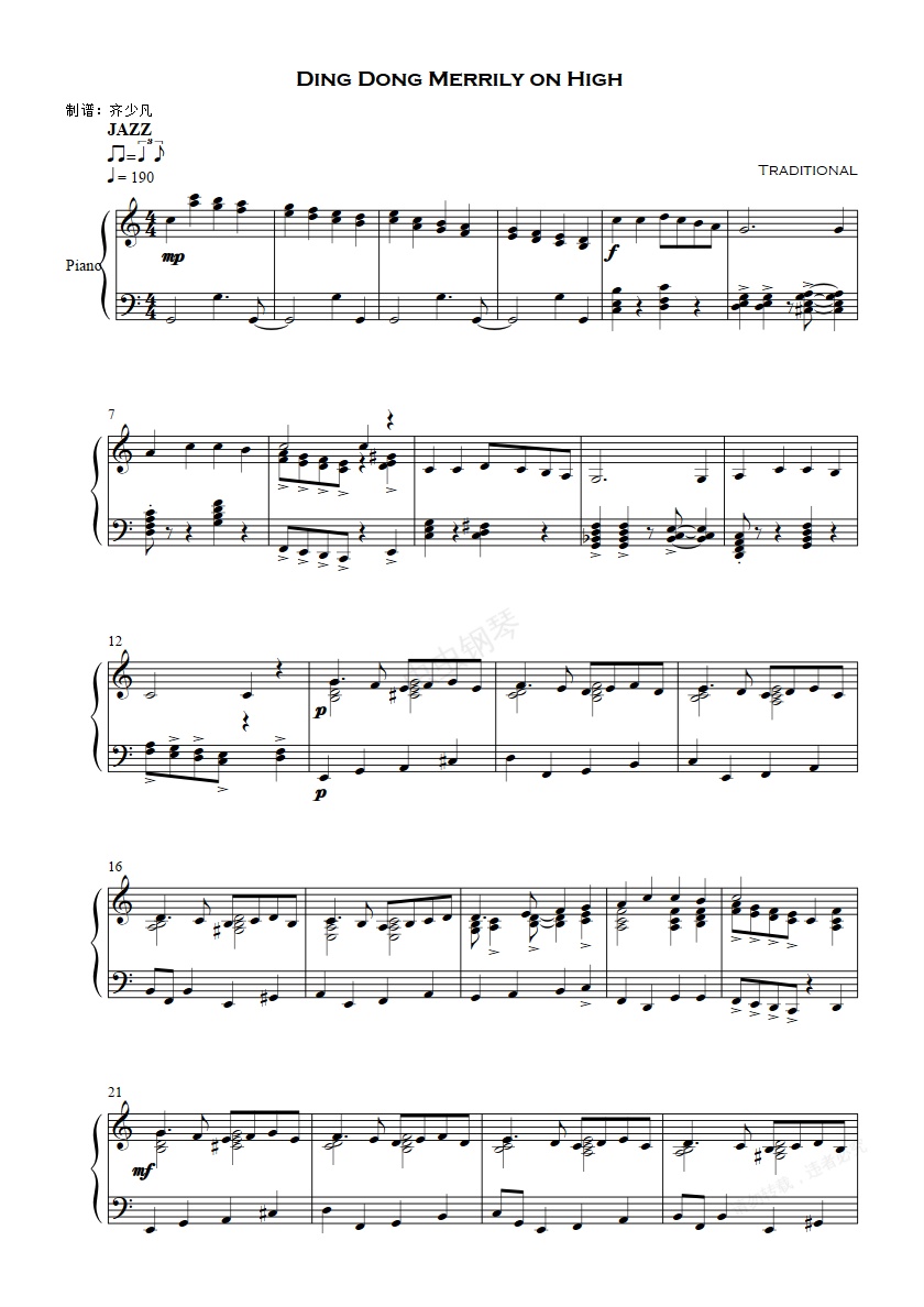 钢琴谱:【爵士】Ding Dong Merrily on High