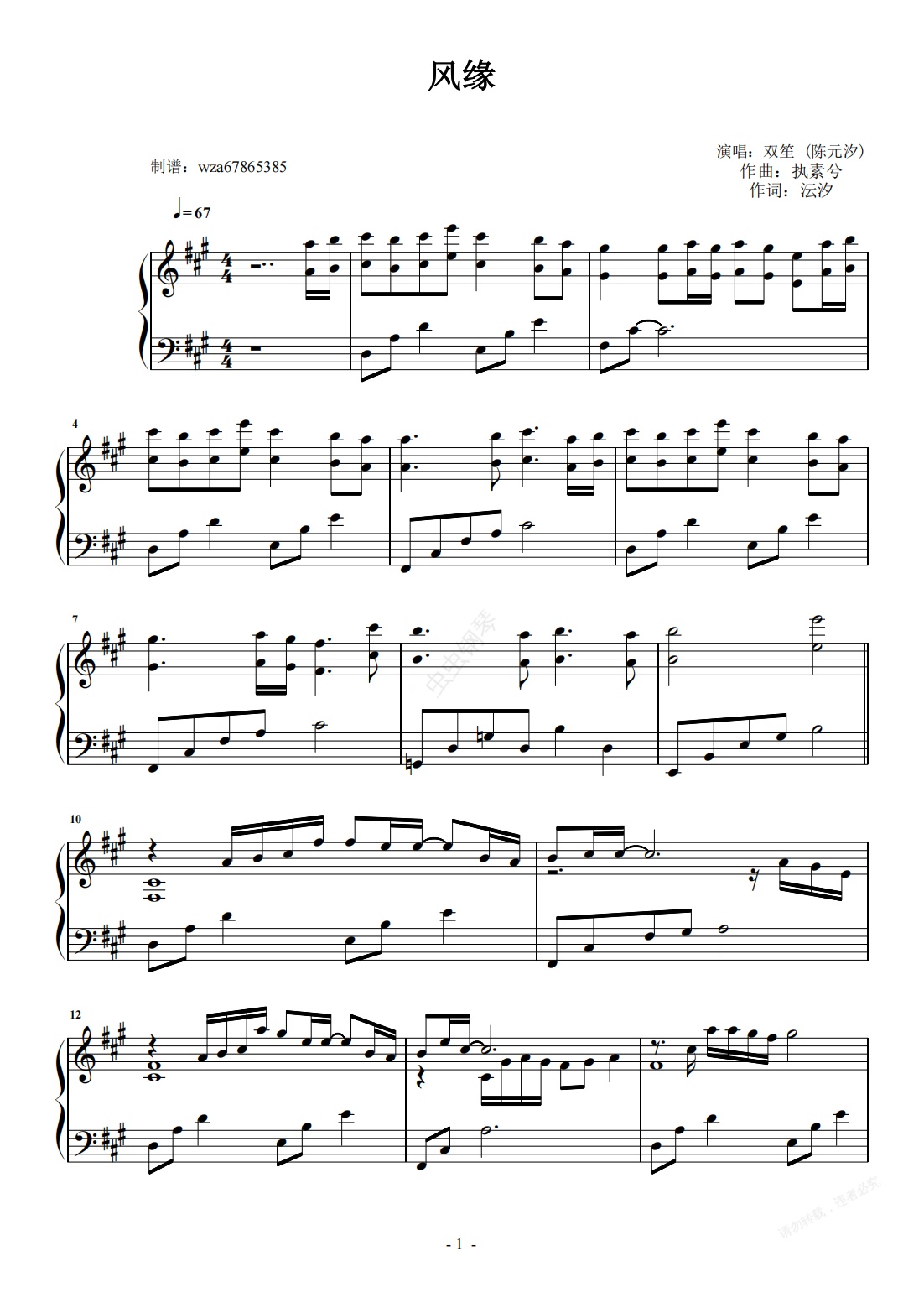 钢琴谱:风缘